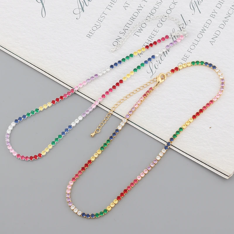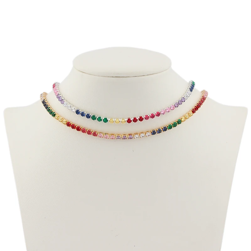 Чокер с регулируемым ползунком Женский, сверкающее ожерелье из Кубического циркония ААА, многослойное Ювелирное Украшение с радужным цирконием, короткое ожерелье