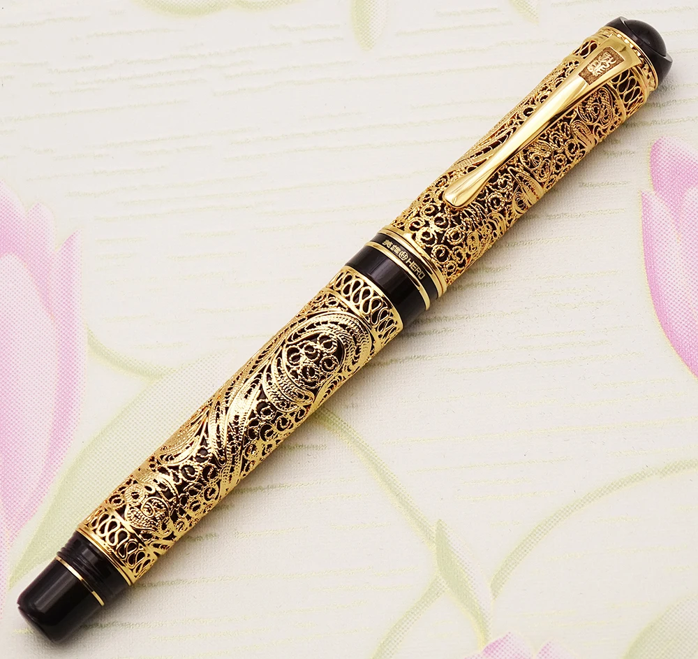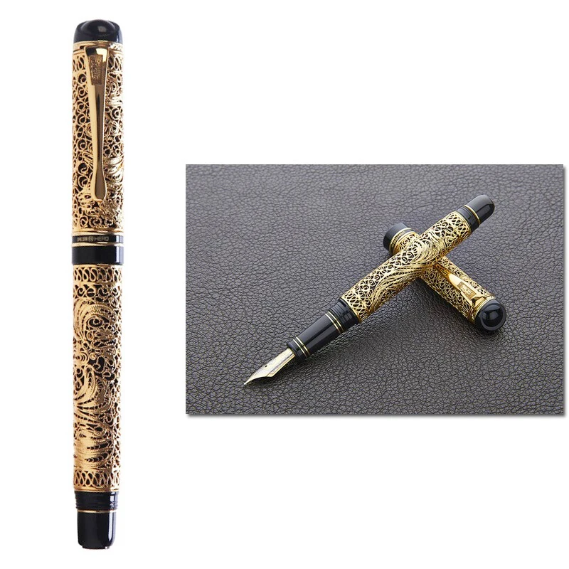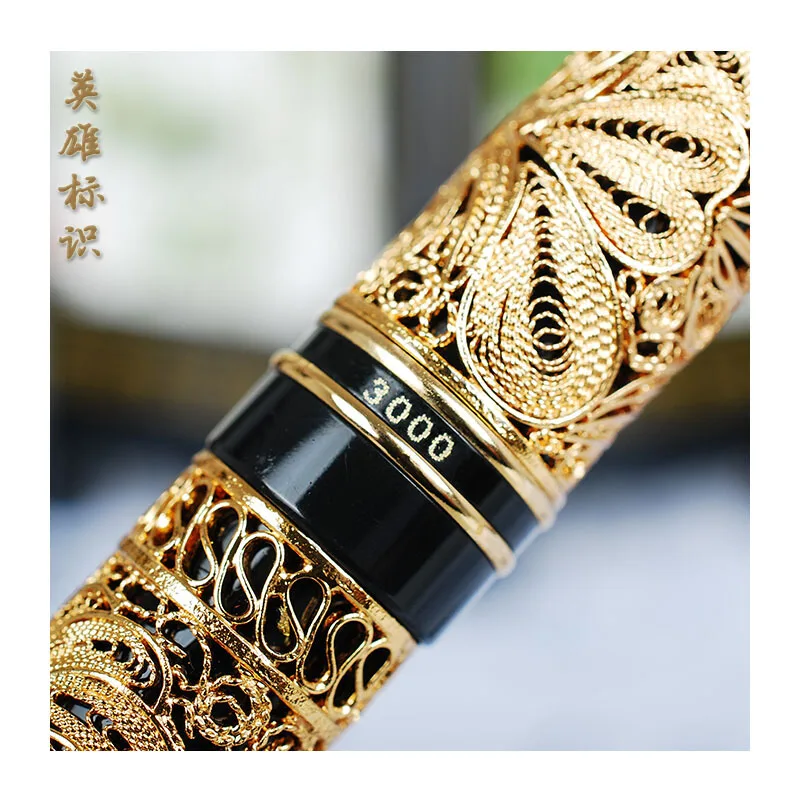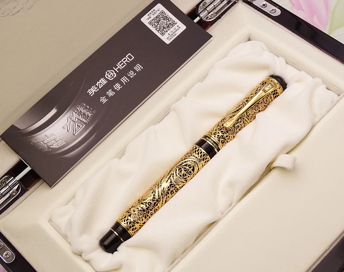 HERO 3000, Классическая перьевая ручка золотого цвета 18 К, ограниченная серия, китайский стиль, золотой шелк, узор бабочки, деловая Подарочная коллекция, набор: