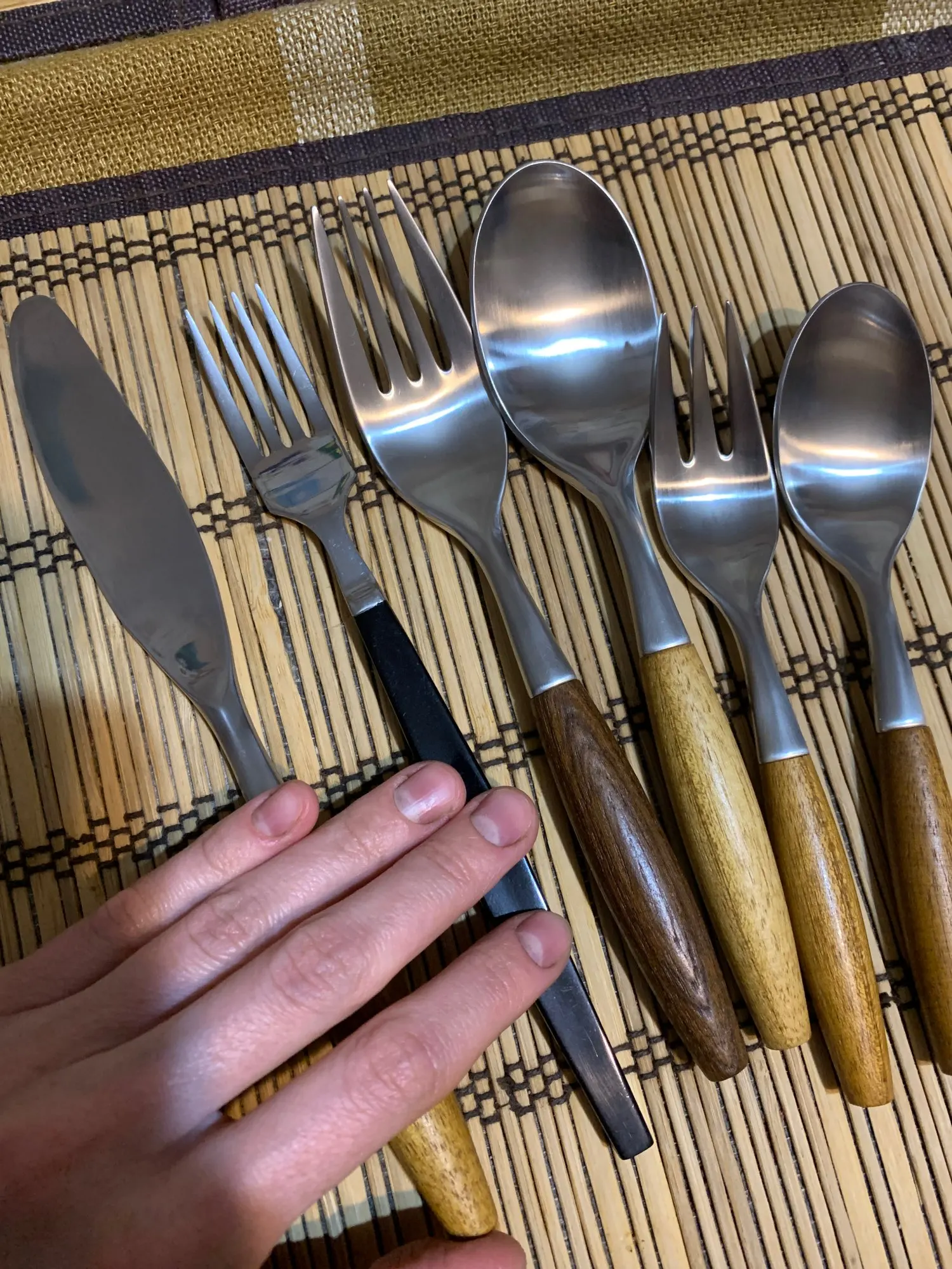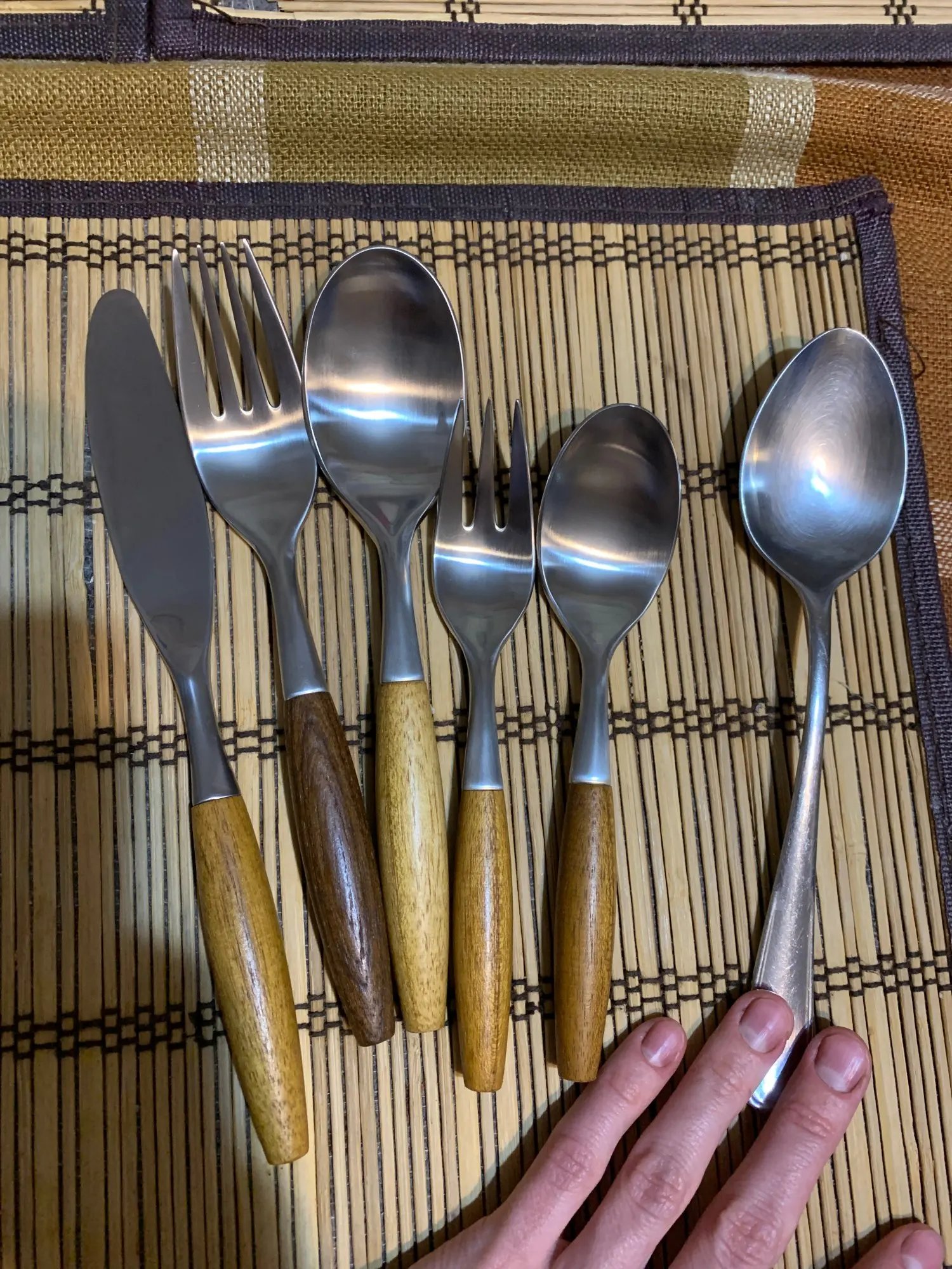 Хорошее качество, приятный матовый металл. Но приборы такого размера…, значительно шире и весомее тех, что в нашем пользовании. Заказывала уже 5 разных наборов приборов для фуд фото с али, и они все крупногабаритные. На фотках добавила свои приборы к сравнению. Чайная ложка из набора = столовая ложка из моего пользования, десертная вилка = столовой.