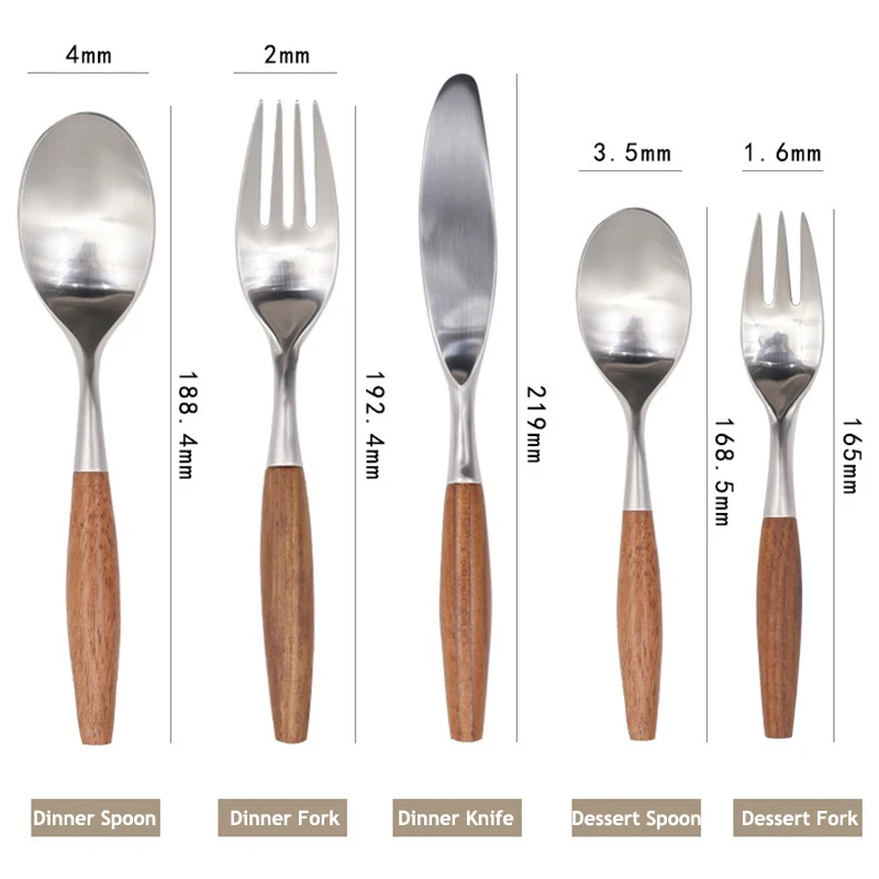 Набор столовых приборов в западном стиле из нержавеющей стали 304, 1-5 шт., деревянная ручка, вилка, нож, матовые столовые приборы, посуда