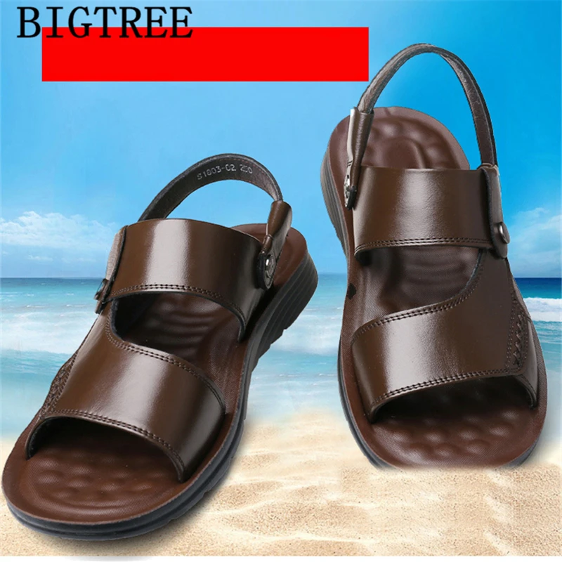 Сандалии мужские кожаные, натуральная кожа, резина, летние мужские шлепанцы, пляжные шлепанцы, Уличная обувь