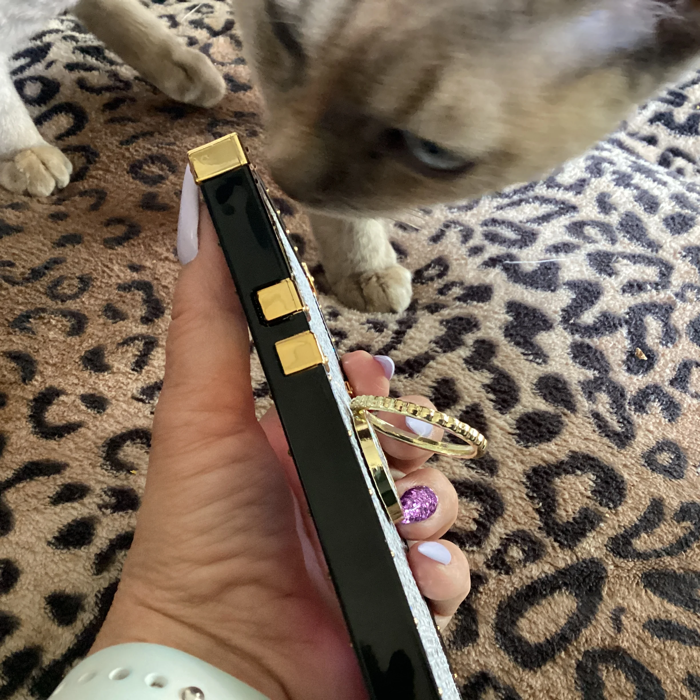 Я не без ума от задней части чехла, так как я ожидал, что это будет более гладкий блеск, который входит в комплект, а не кусок блестящей ткани. В целом чехол действительно приятный. Кнопки великолепные, и мне нравится квадратная форма. В целом это хороший чехол по цене, и я быстро получил его.