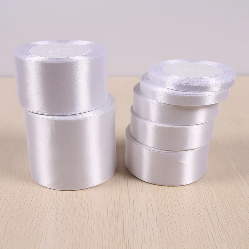 Все новые 25 ярдов белые шелковые атласные ленты, свадебные украшения, подарочная упаковка, Рождество, Новый Год, одежда, швейная ткань C-9