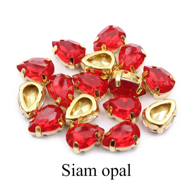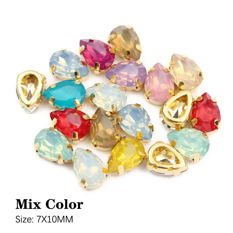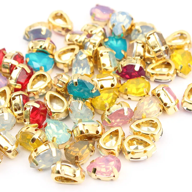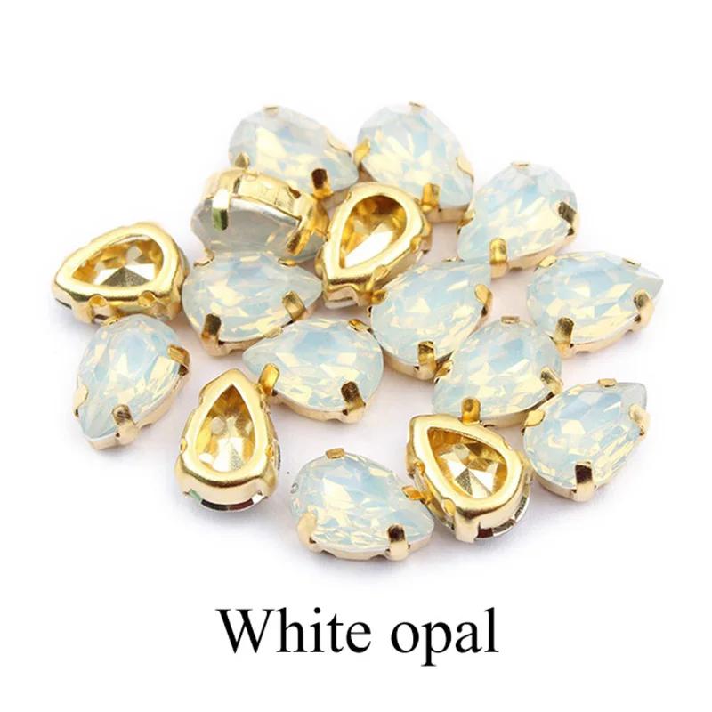 Горячая Распродажа 7x10 мм 50 шт капли воды пришивать Стразы Белый опал цвет золотой коготь смолы декоративные камни для одежды DIY Бесплатная доставка