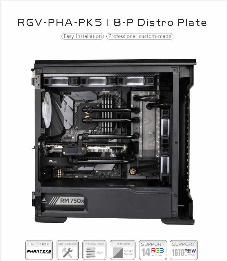 Акриловая доска BYKSKI для водных каналов Phanteks PK518(Evolv X) Чехолблок ЦП GPU3PIN RGBакриловый резервуар