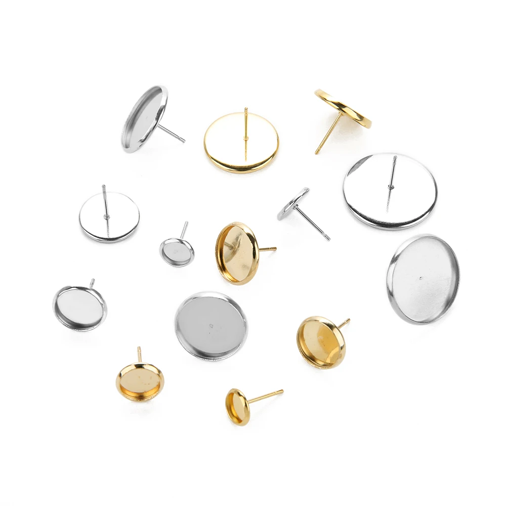2.0 шт./лот, нержавеющая сталь 316L, 6-20 мм, золотой, серебряный тон, пустые круглые серьги, шпильки, базовый лоток, Безель, подходит для самостоятельного изготовления кабошонов, ювелирных изделий