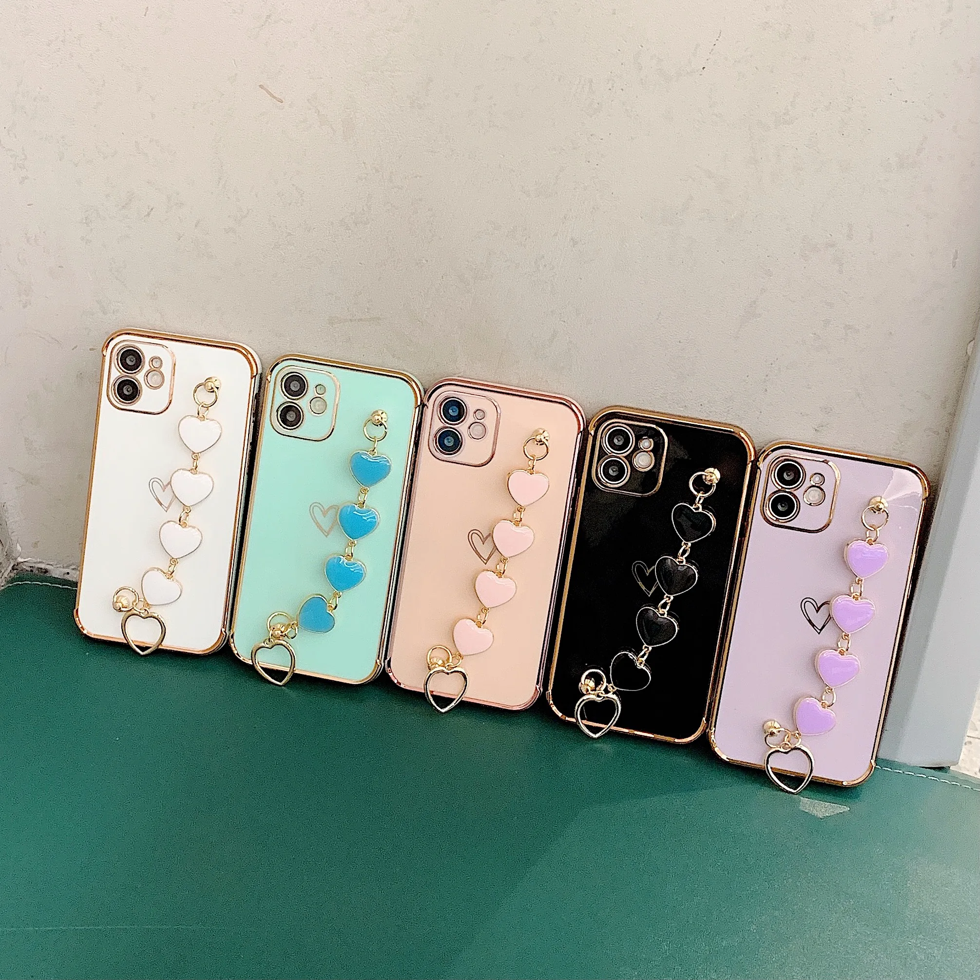 Модный чехол для телефона iPhone 12 Mini 11 Pro XS Max с цепочкой на запястье и металлическими краями, ударопрочный мягкий чехол