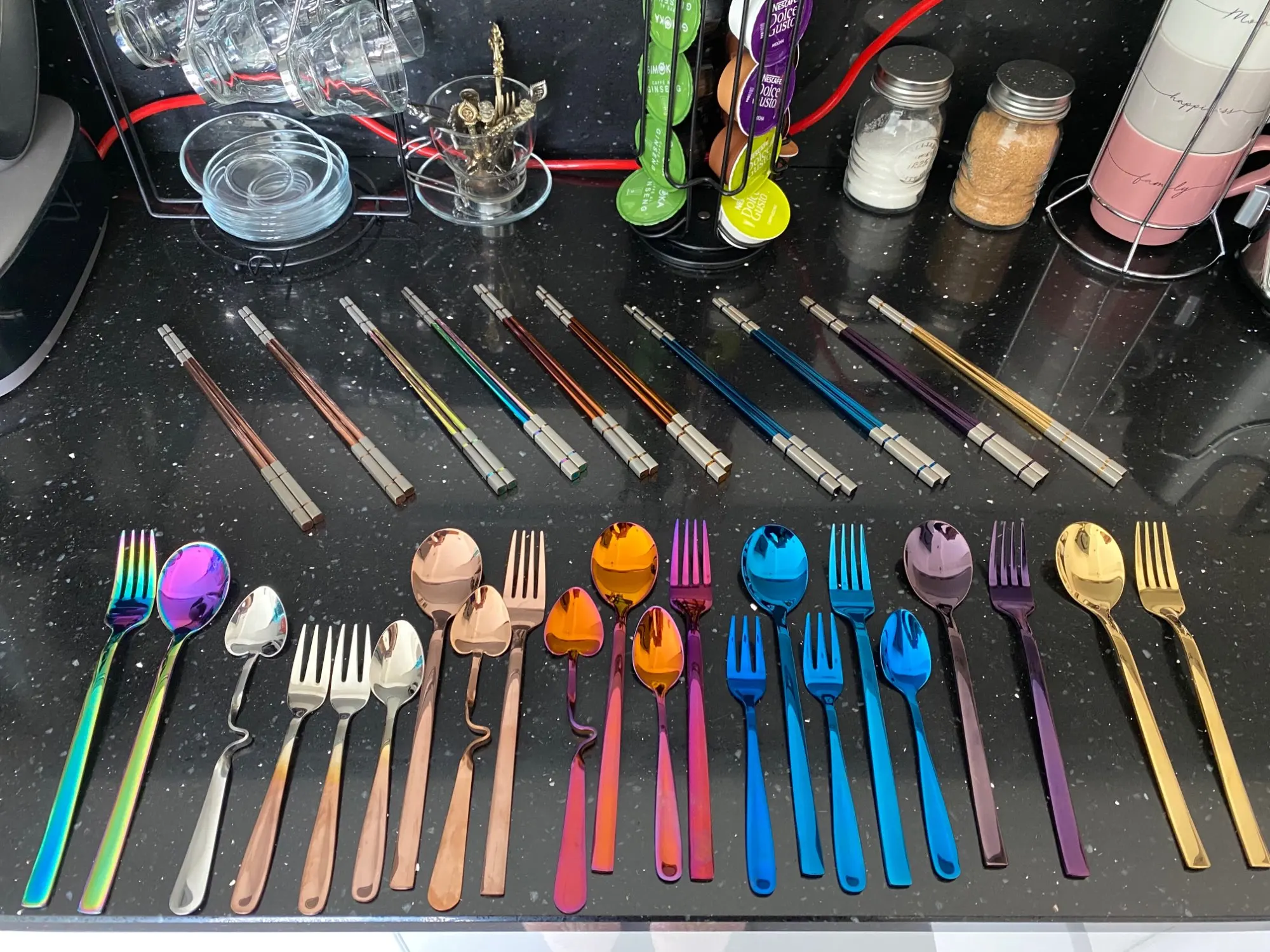 Красивый и элегантный комплект, довольно тонкий и маленький для изысканных рук. Жесткий для рук beefly. Отлично подходит для самостоятельного использования горячих горшков, чтобы забрать продукты для броса в горячий горшок. Цвет меняется при катании в руках. Настоятельно рекомендуемый продавец.