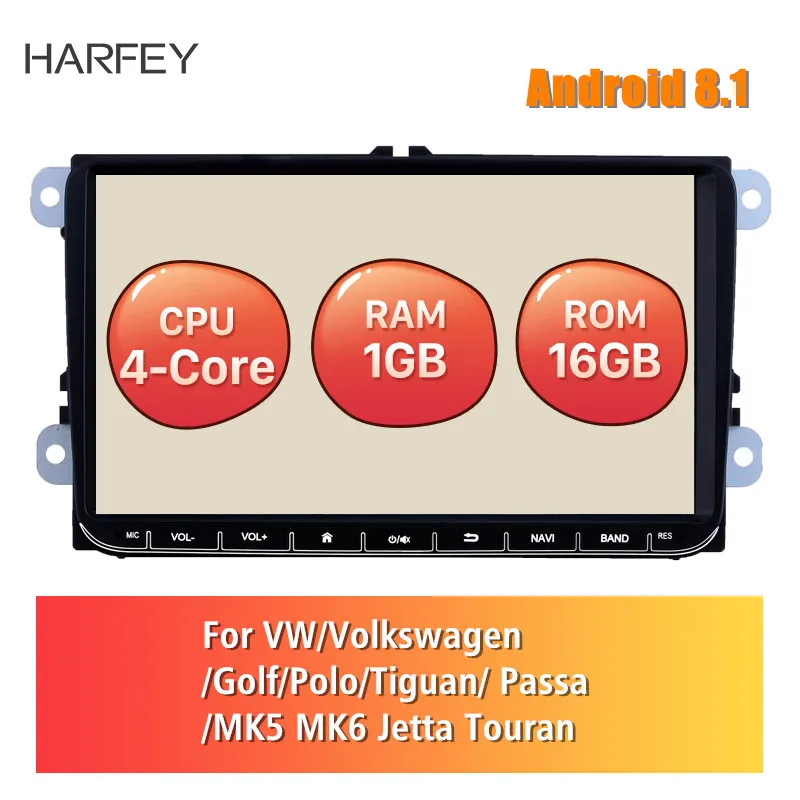 Автомагнитола Harfey 9 "3G Android 8,1 для VW Volkswagen Golf Polo Tiguan Passa MK5 MK6 Jetta Touran, GPS МУЛЬТИМЕДИА, CANBUS