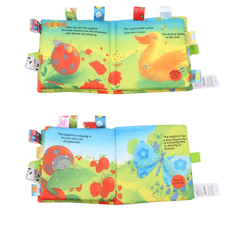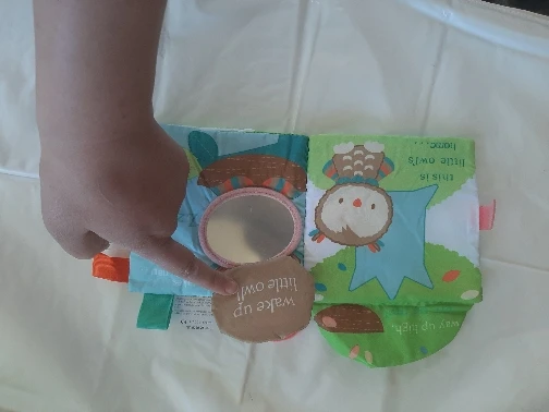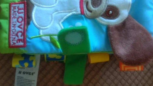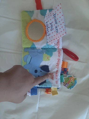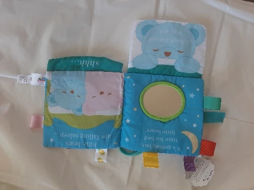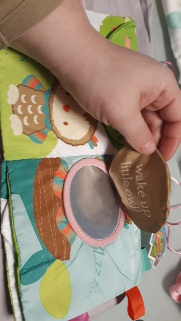 Colour looks a bit faded, has gramatical error in one page ("saleep" instead of "asleep"), bad quality mirror inside. But on the other hand the toy has a lot different surfaces to touch, rustles and squeecks.