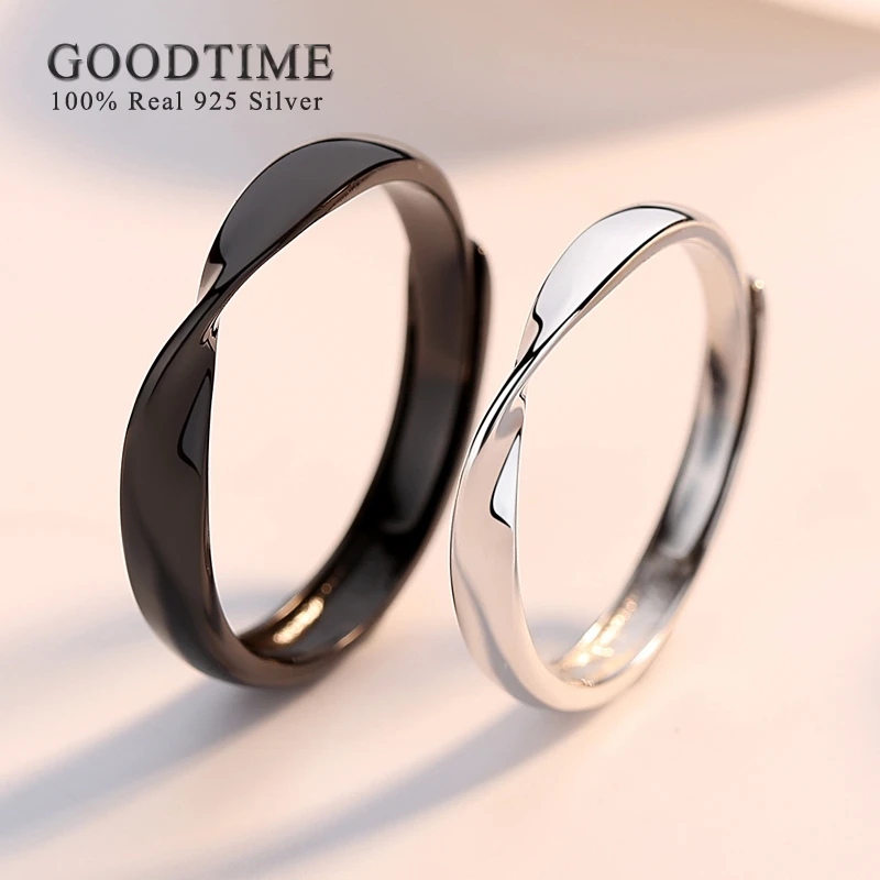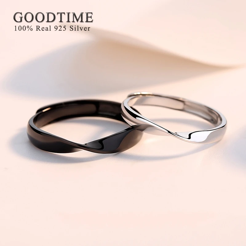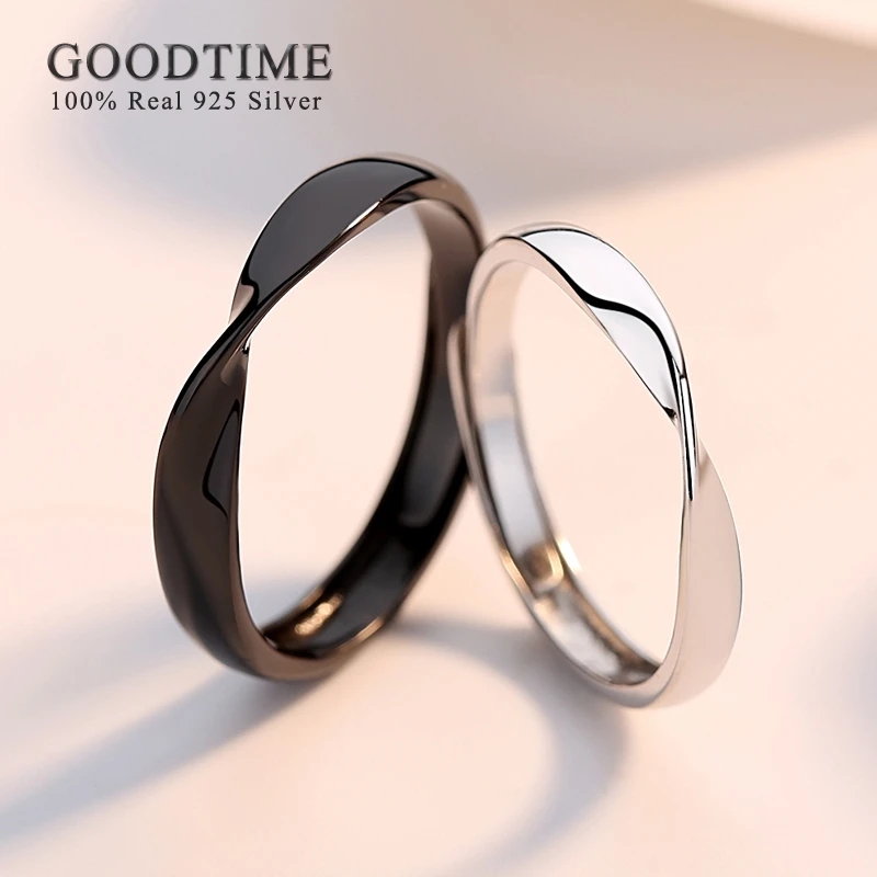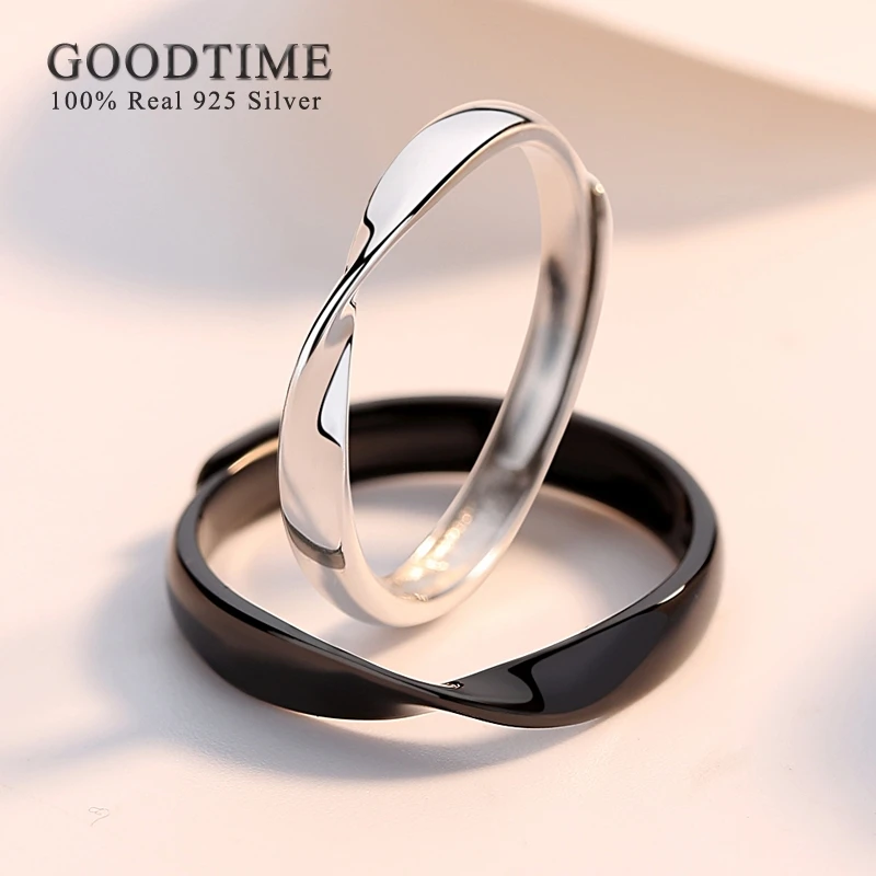 Hipster Mobius регулируемые обручальные кольца из стерлингового серебра 925 пробы в простом стиле, черно-белые, кольца для возлюбленной