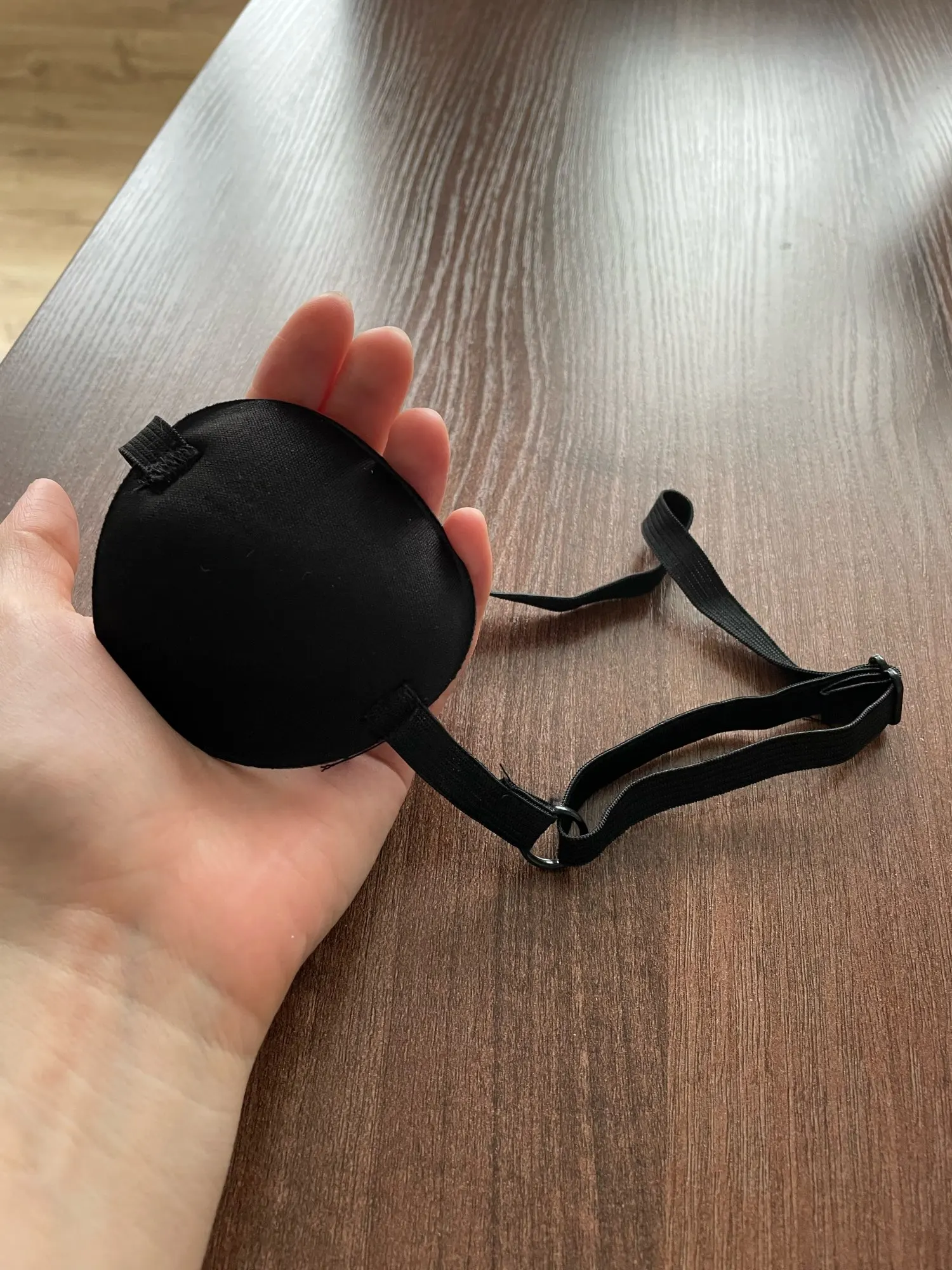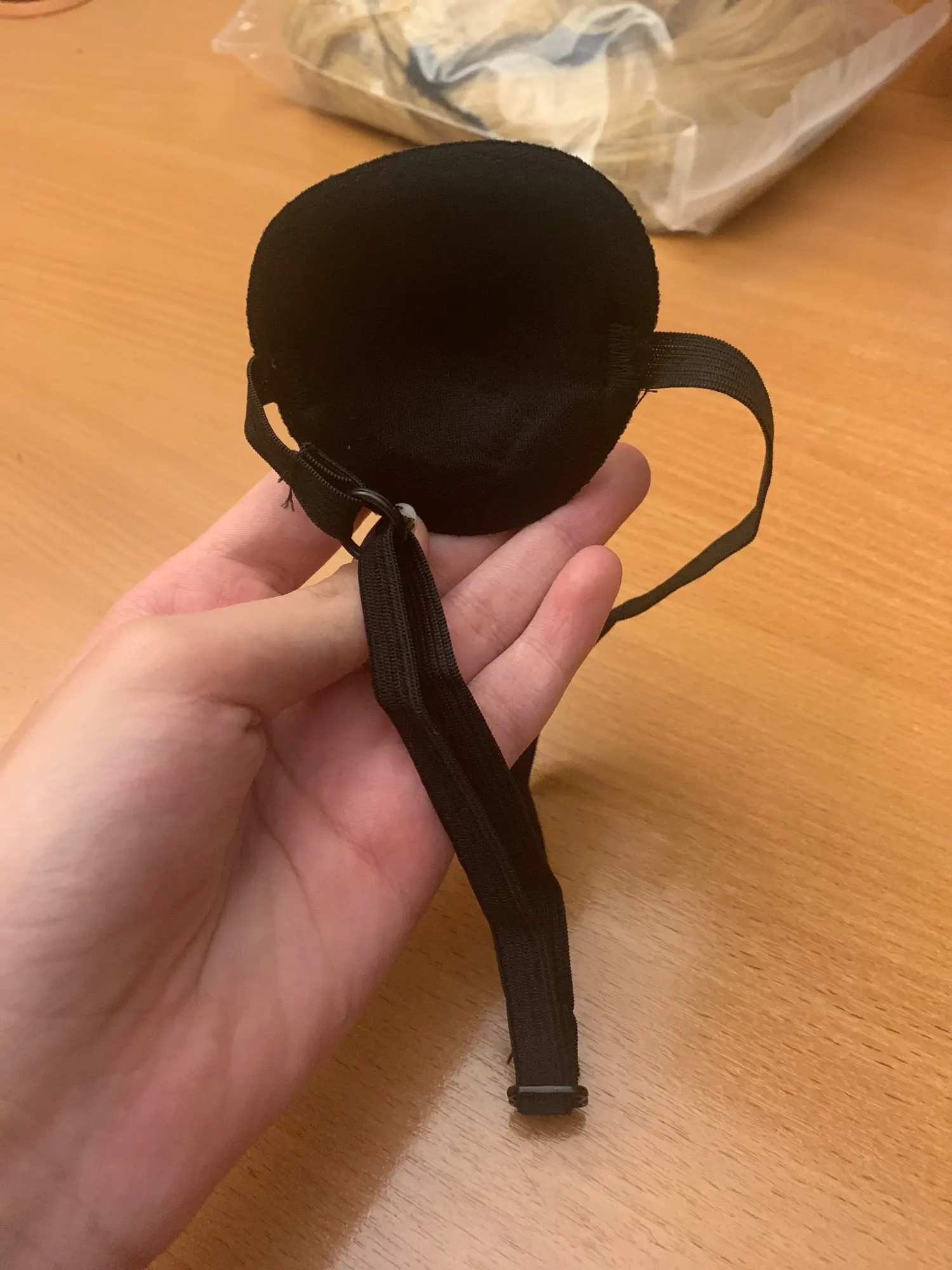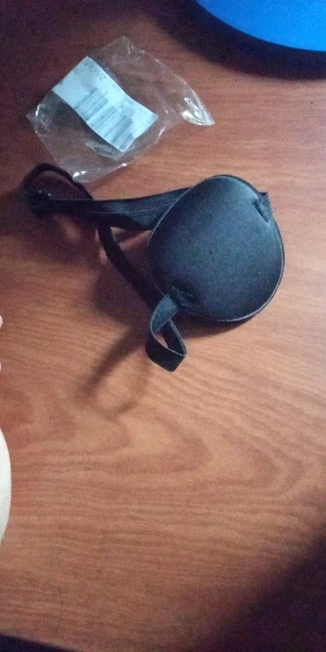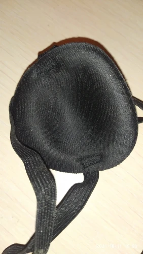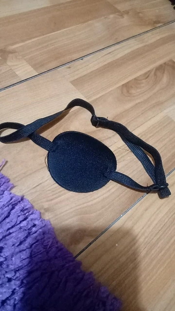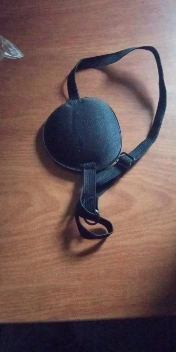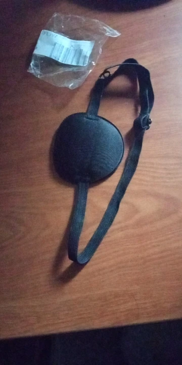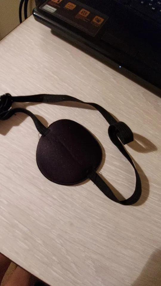 Очень удобная повязка на глаз, прессованный поролон, для лечения амблиопии у ребенка, но с маленькой головы влезает, а если натянуть ребенку по-туже, то больно. В общем, классная повязка, но надо доработать.