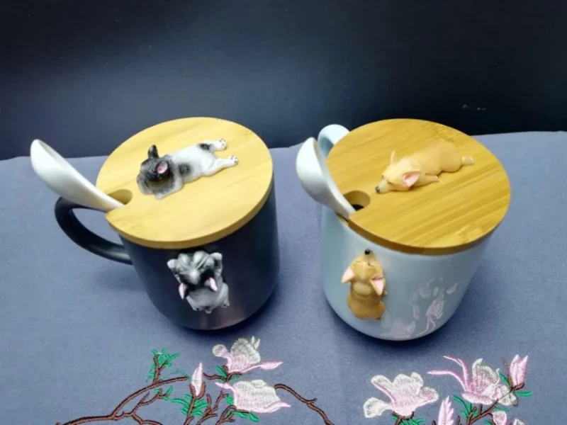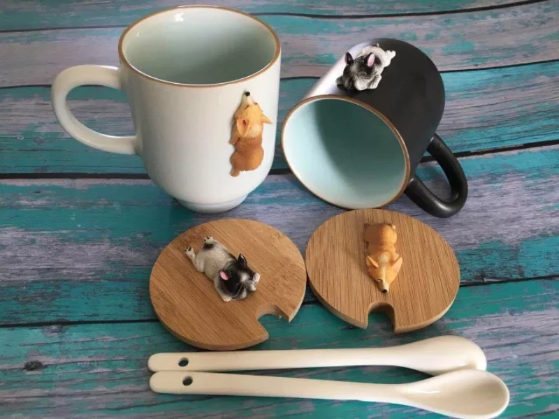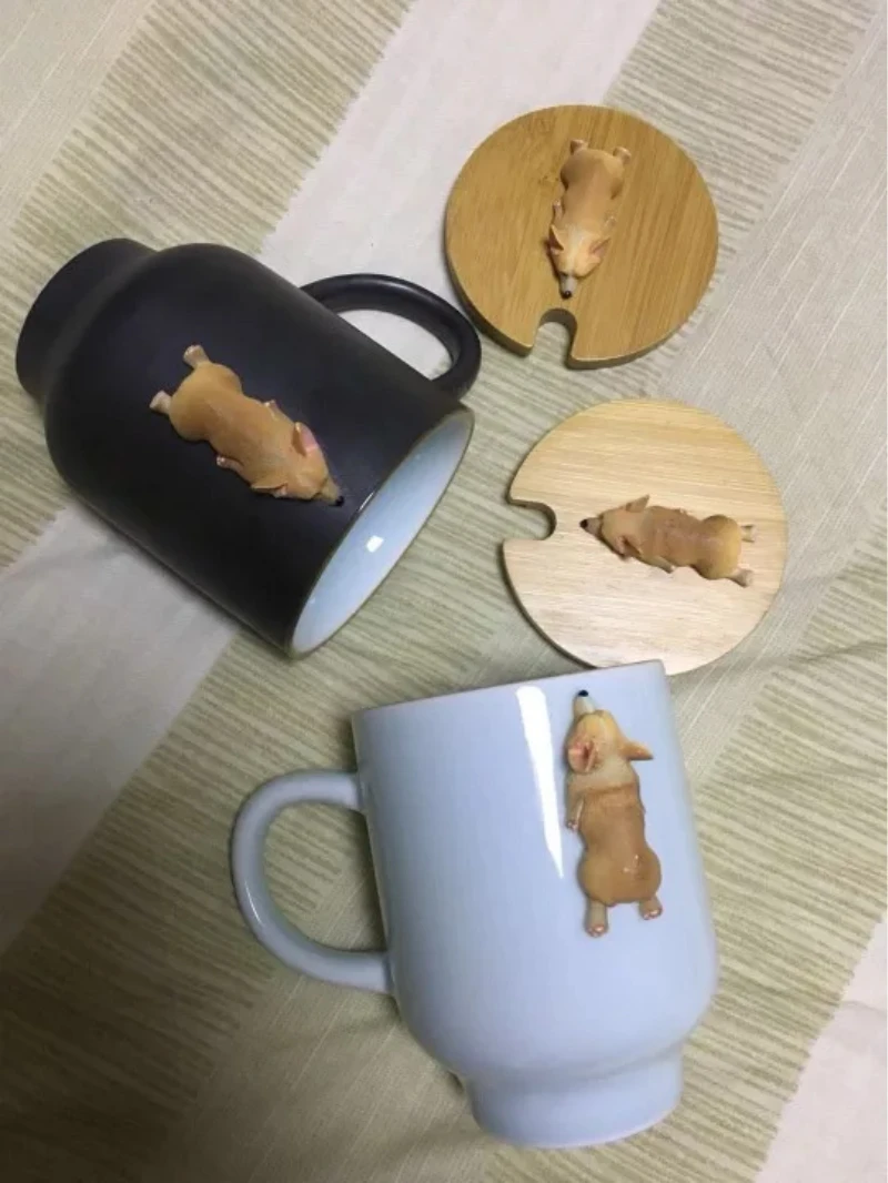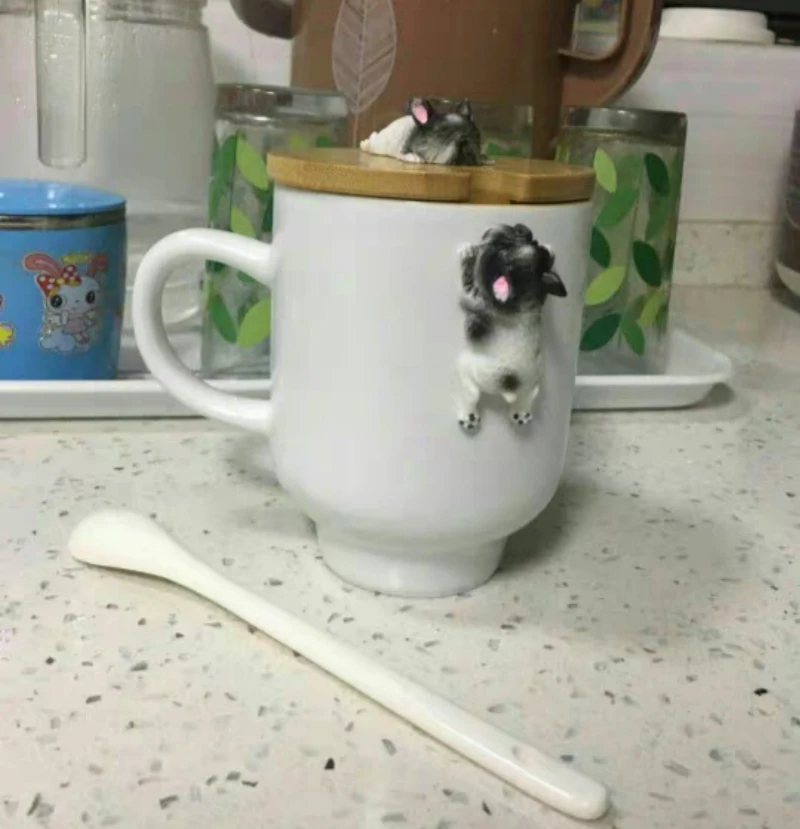 Размер: 11 см * 8 смЕмкость: 400 млНаименование товара: креативные керамические кружки с 3D рисунком корги французского бульдогаМатериал: керамика/дерево