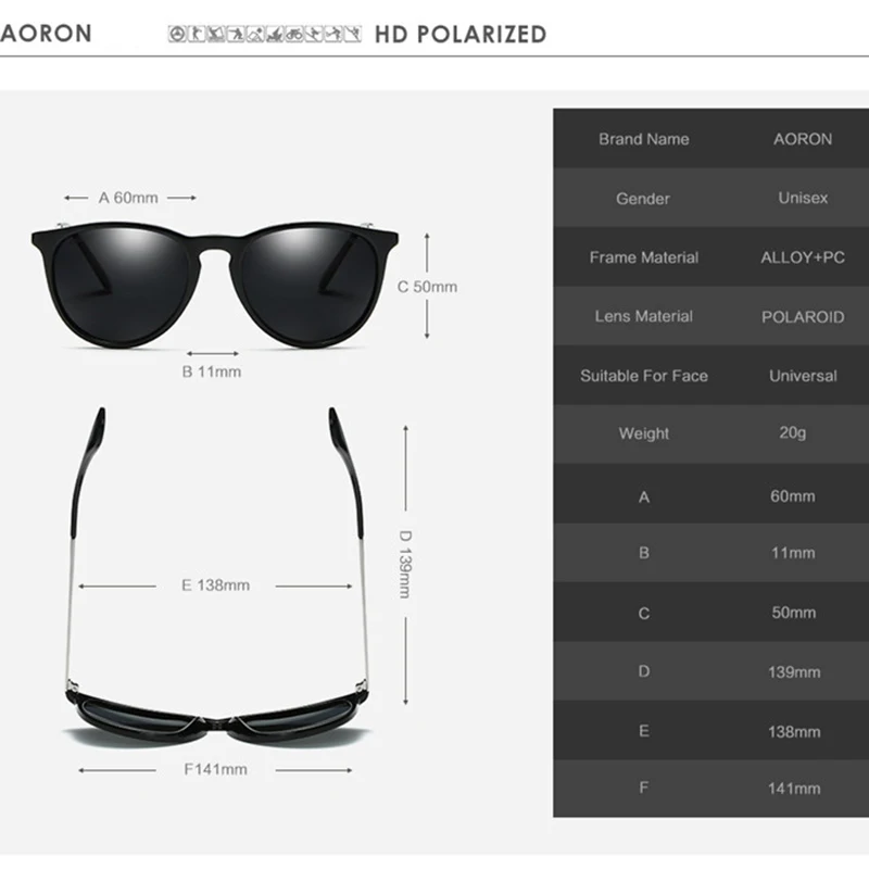 Солнечные очки AORON поляризационные UV400 для мужчин и женщин, модные классические зеркальные солнцезащитные аксессуары