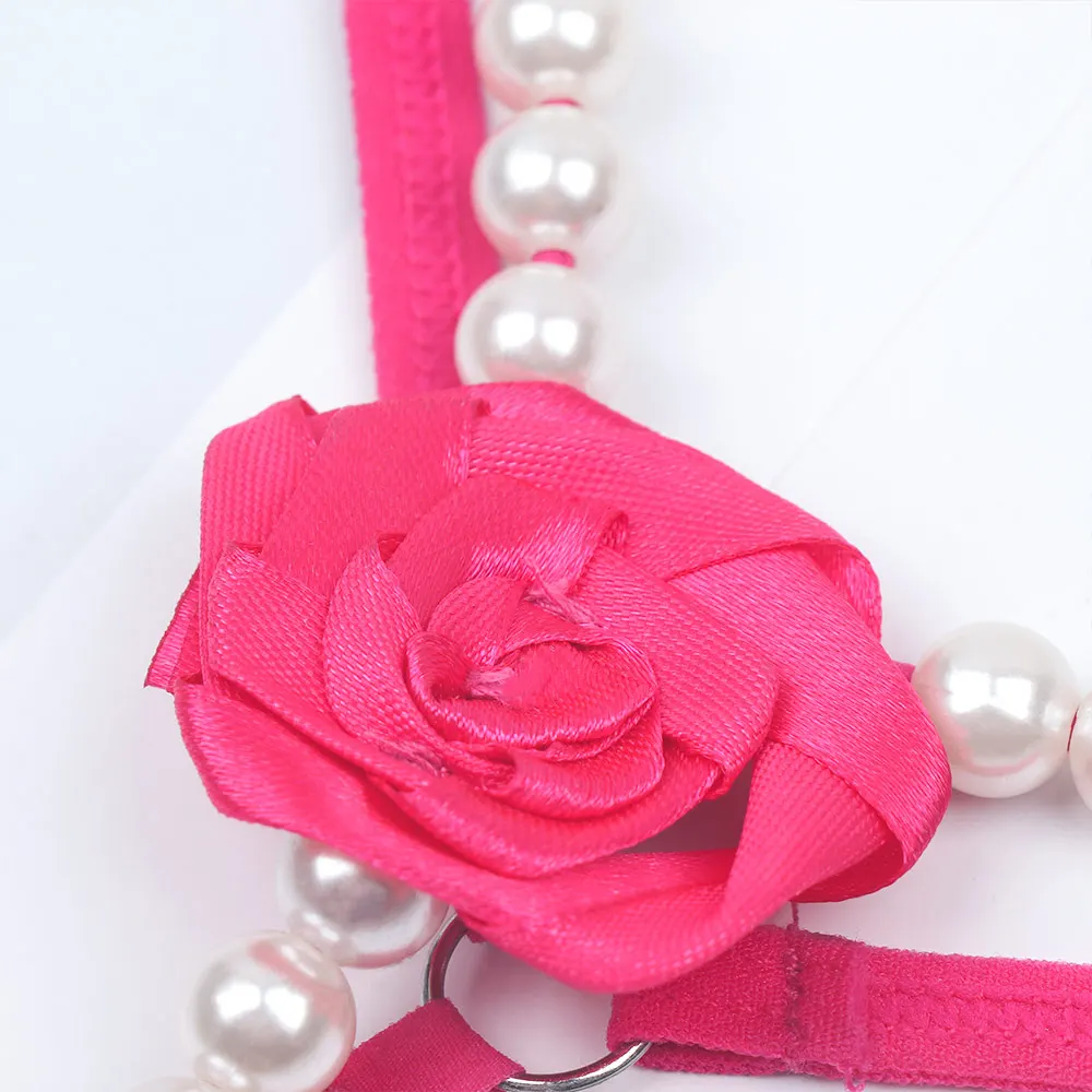 Сексуальное нижнее белье с жемчугом, женские стринги с цветком, Соблазнительные трусики, трусики с жемчугом