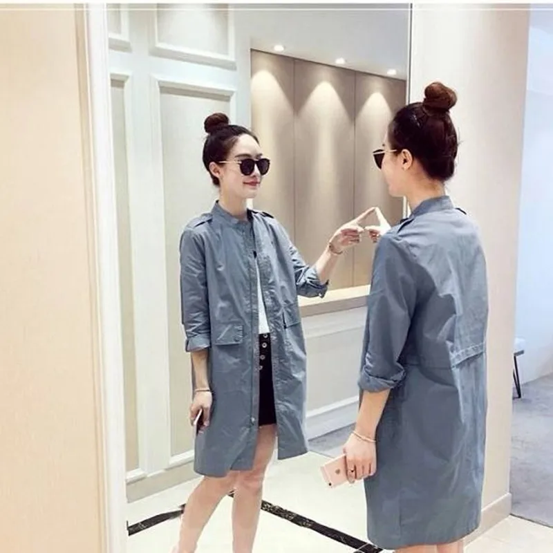Пальто женское осеннее, длинное, с V-образным вырезом и карманами