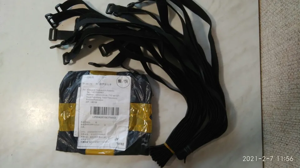Получил стяжки на почте. Отправление с прощённым отслеживанием. Упаковано в обычный пакет, впрочем всё целое. Это не столько кабельные стяжки, сколько бытовые. Да и в путешествии можно вещи крепить.