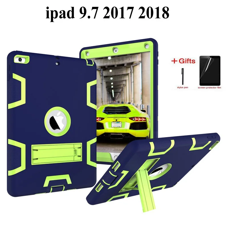 Ударопрочный сверхпрочный чехол для iPad 9,7, 2018, 6-го поколения, с детским сейфом, силиконовый чехол для ПК, задняя крышка для iPad 9,7, 2017, чехол + подарки