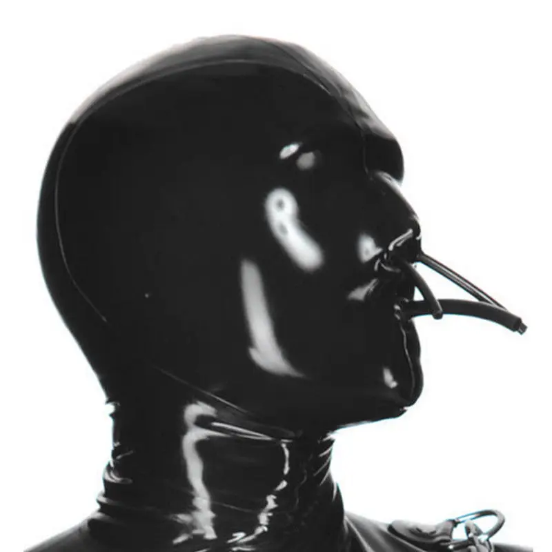 Латексный капюшон с фиксированным полым ротом и носом, резиновая маска, Клубная одежда, БДСМ-ошейник, секс-игрушки для пар, маска, БДСМ