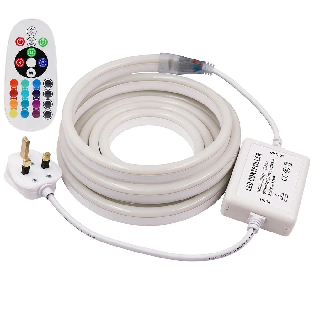 2) светодиодная неоновая лента RGB поставляется с пультом дистанционного управления IR RGB (без батареи), 1 шт. алюминиевых зажимов (1 м светодиодная неоновая полоса с зажимом 1 шт.), белый/теплый белый только с 1 штепсельной вилкой европейского стандарта (без пульта ДУ, без контроллера)3) 1 шт. 750 Вт RGB контроллер может управлять только 1-25 м неоновый светильник