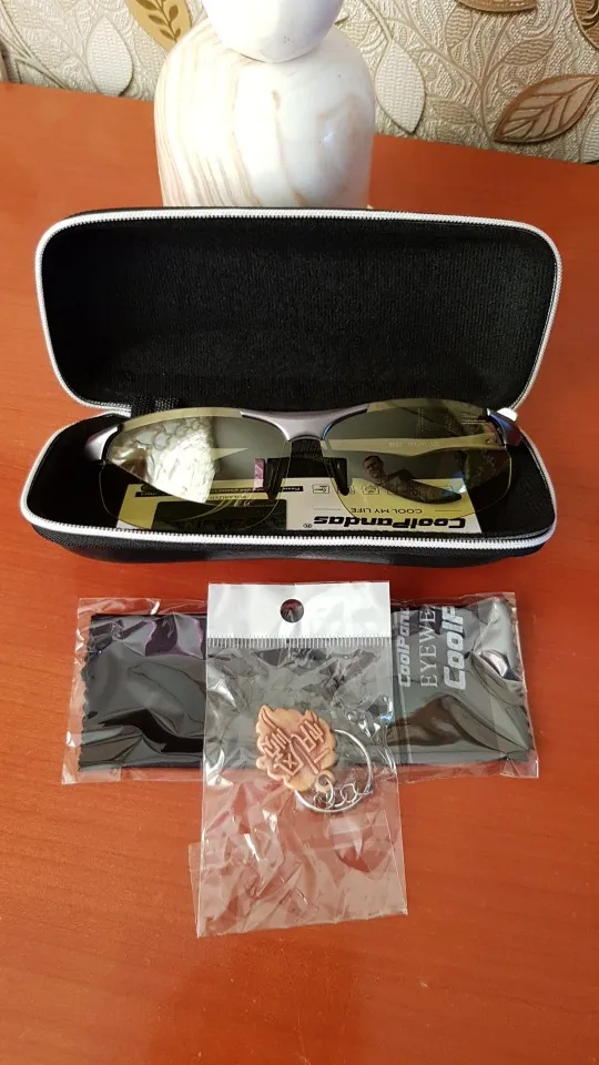 Очки качественные, в комплект входят помимо самих очков, жесткий чехол, мягкий чехол, и тряпочка для протирки. Также были вложены тест поляризации и презент от продавца (брелок). Важное замечание, в инструкции написано, что автозатмение линз происходит под действием ультрафиолета, и в машине будет плохо работать т.к. УФ там экранируется стеклами.
