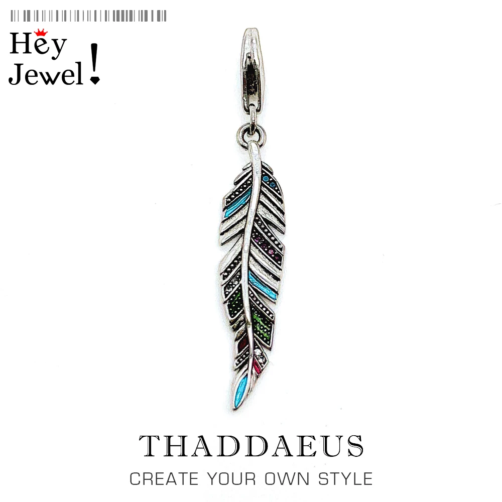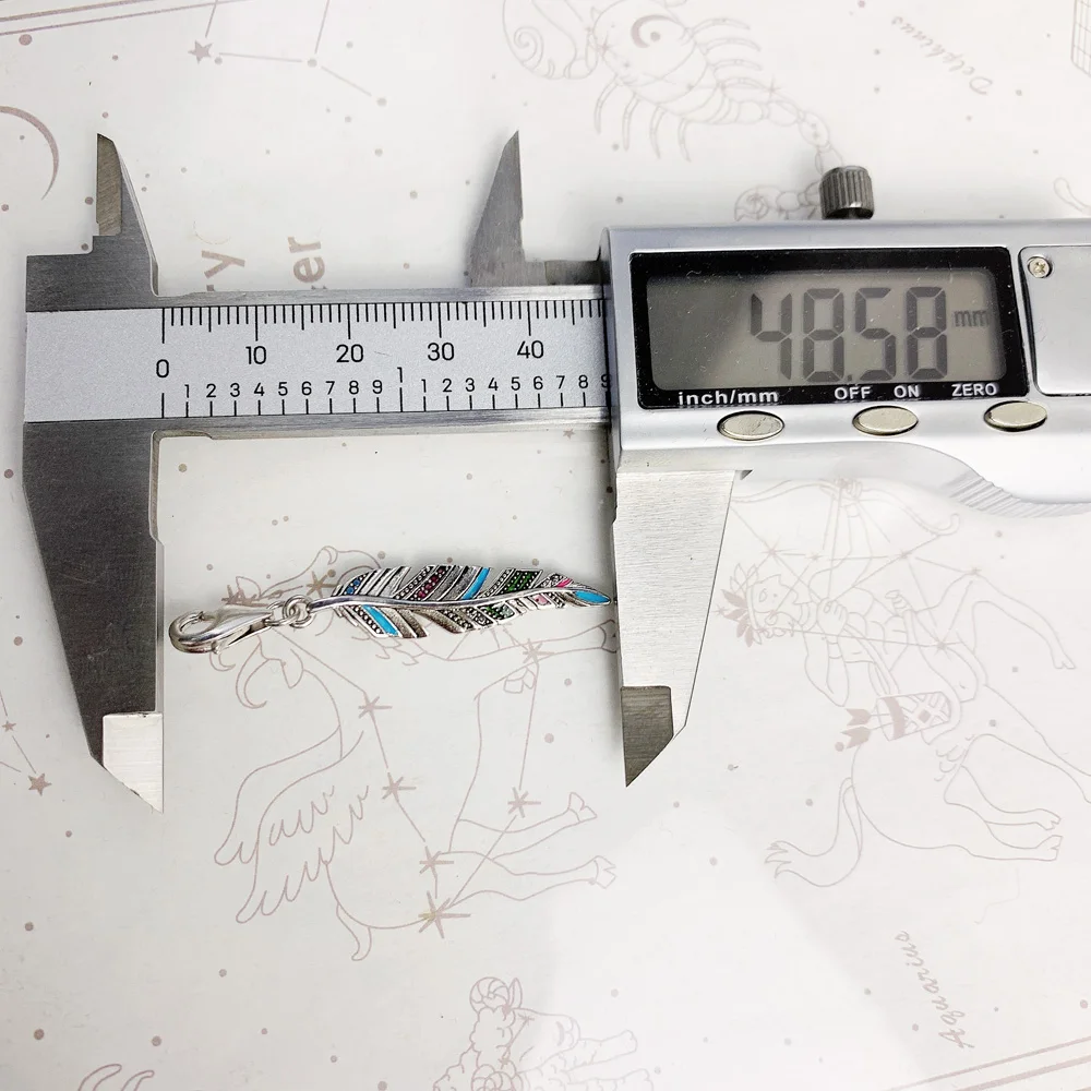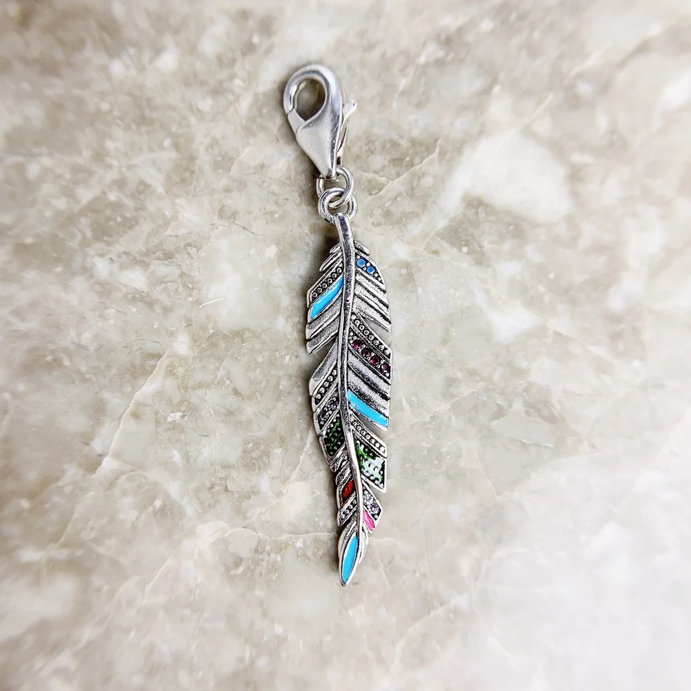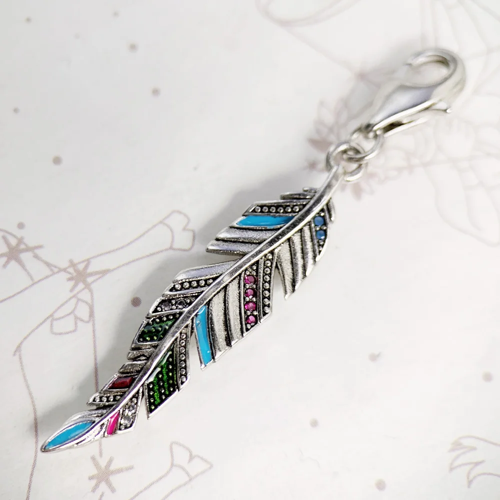 Шарм-подвеска из стерлингового серебра 925 пробы с разноцветными перьями, летняя бижутерия 2019, подарок для браслета для женщин и мужчин, модные украшения