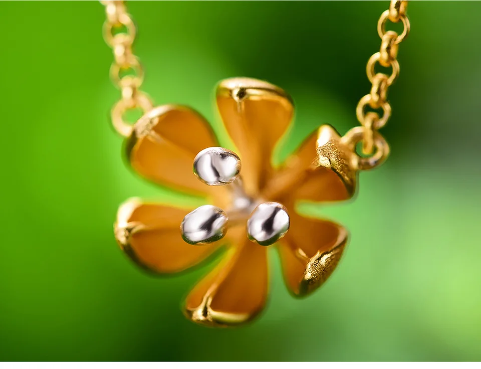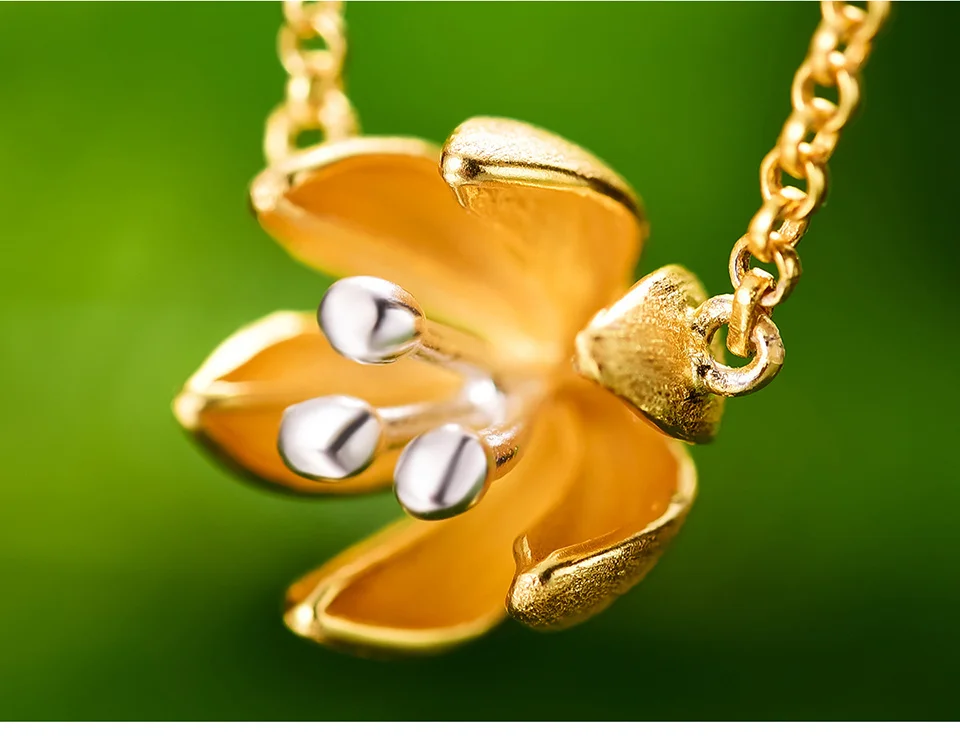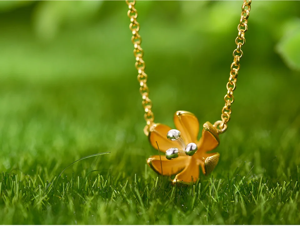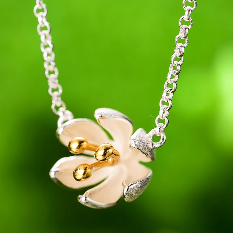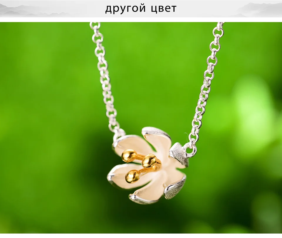 Женский кулон Свежий Цветущий цветок Lotus Fun, изящное дизайнерское ожерелье ручного изготовления из настоящего серебра 925 пробы