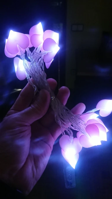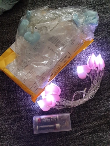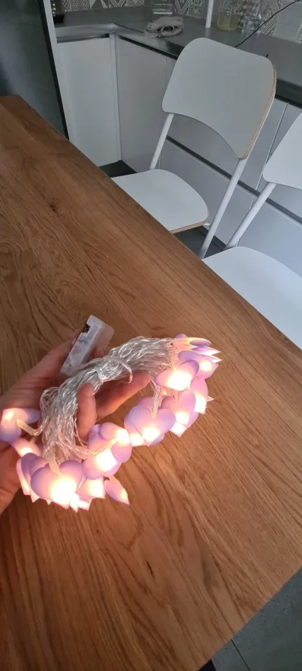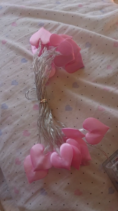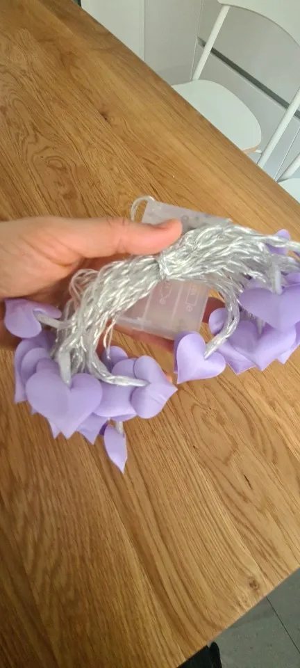 Честно говоря, разочарован качеством, свет не очень красивый, сердечки в странном деле, и они сильно склеены... Он пахнет супер сильным пластиком, я не буду использовать его