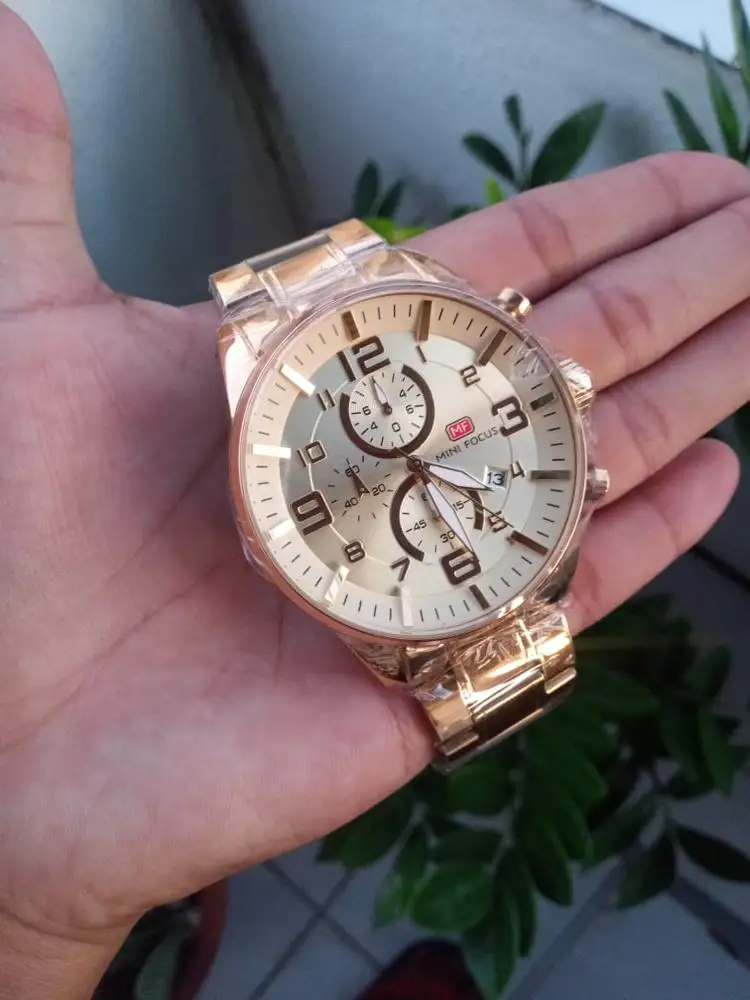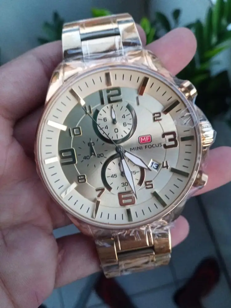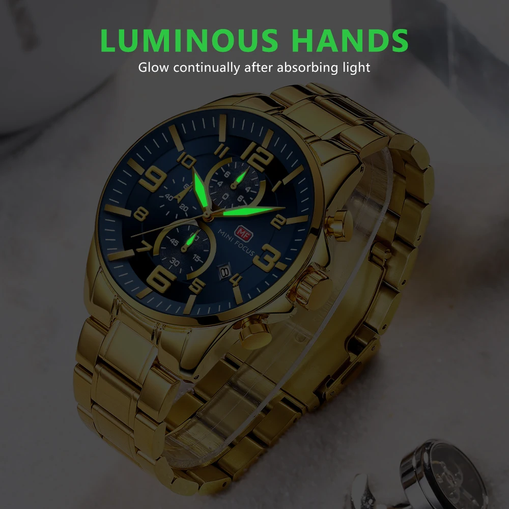 Часы MINI FOCUS мужские, брендовые роскошные золотистые водонепроницаемые деловые, с календарем, Новинка