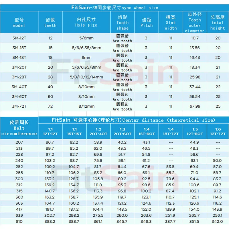 Передаточное число шкивов из алюминиевого сплава FitSain-3M 12T15T1...