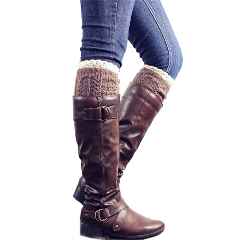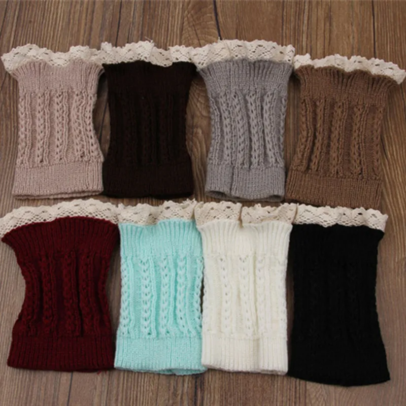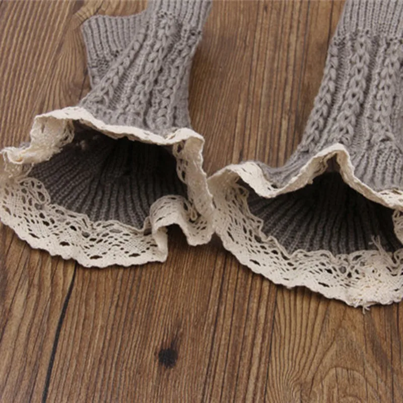 Женские зимние гетры для девочек, пуховики, манжеты, кружевная отделка, гетры, носки, вязаные крючком гетры, короткие Вязаные Гетры