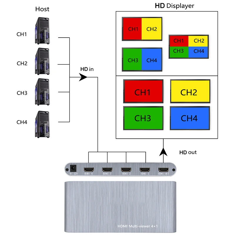 TypeHDMI 4X1 Quad Multi-Viewer Splitter