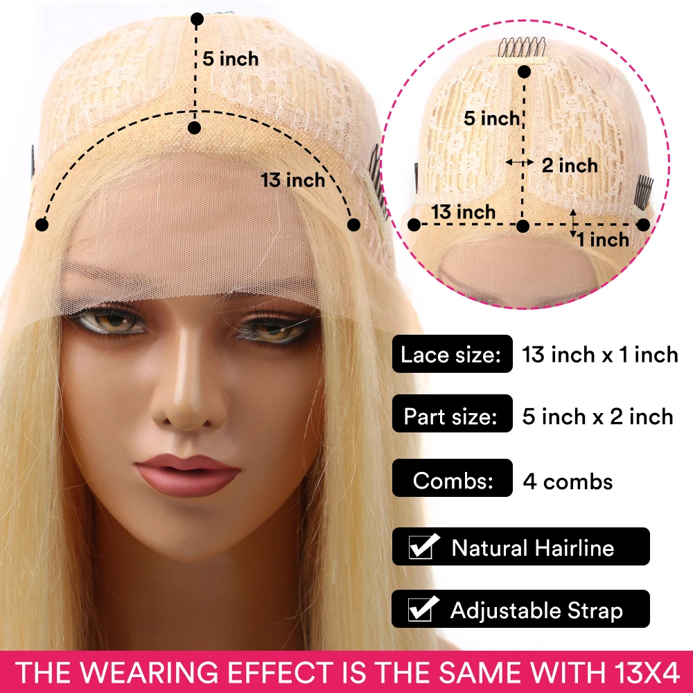 Парик блонд из натуральных бразильских волос, 613, без клея, 13x1, 150% HC