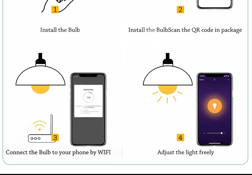 Быстрая доставка. Лампочки пришли за две недели в Украину. Упаковки были мятые, но на работоспособность никак не влияет. Все светит отлично и работает с приложением по Bluetooth. Брал две с теплым белым цветом (оттенком). Жаль только, что у них яркости маловато, как будто лампочка не на 15 ватт, а на 10. Плюс жёлтый цвет более к зелёному похож. А так все отлично. Продавца рекомендую и как сам товар. А+