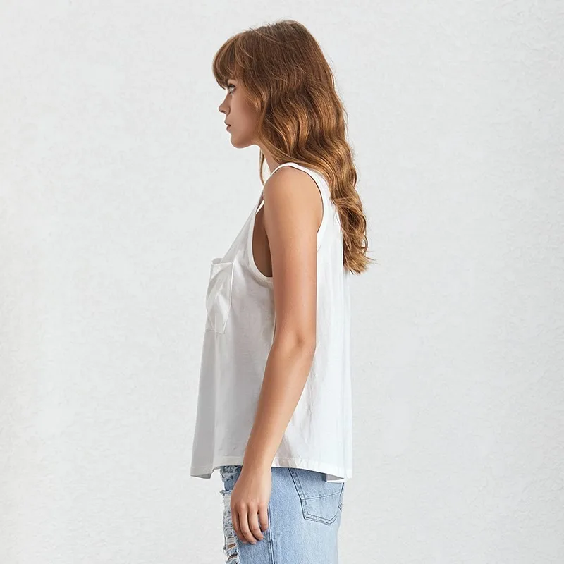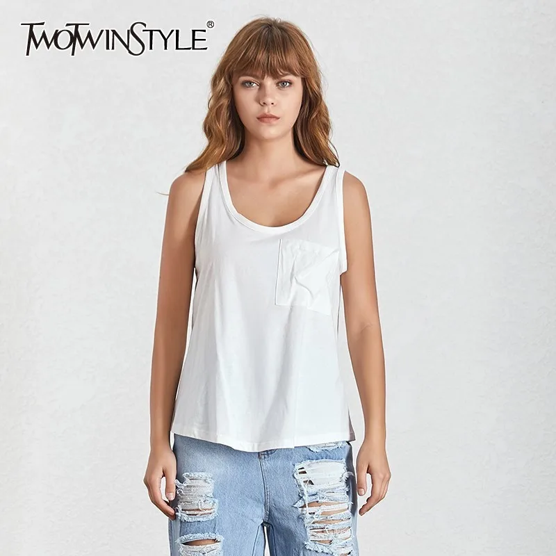 Женский топ с V-образным вырезом TWOTWINSTYLE, летний Повседневный жилет с карманами, большие размеры, 2020