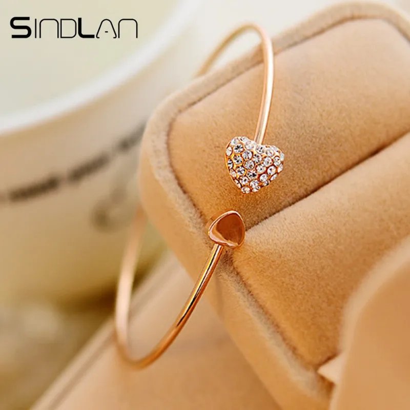 Sindlan браслеты с сердечками для женские браслеты простой браслет Сладкая девушка Кристалл цепочка на запястье открытый золотой браслет ювелирные изделия браслет браслет хрустальный браслет цепной браслет круг браслет