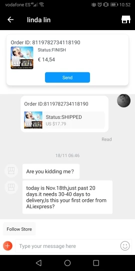 На сегодняшний день, самый плохой опыт, который у меня когда-либо был за 6 лет покупок в Интернете. 40 дней ожидания продукта. И ПРОДАВЕЦ слишком высокомерен. Вместо того, чтобы объяснять, почему другие получили его через пару недель, он насмешил меня, заявив, что я noob и задав вопрос, покупаю ли это в первый раз в Интернете. Ну, нет, мистер дикхед, думаю, что? Это не моя первая покупка в Интернете, но я удостоверюсь, что вы больше ничего не продаете в Интернете.