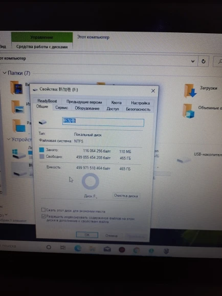 Работает. Доступно 465 Гб из 500