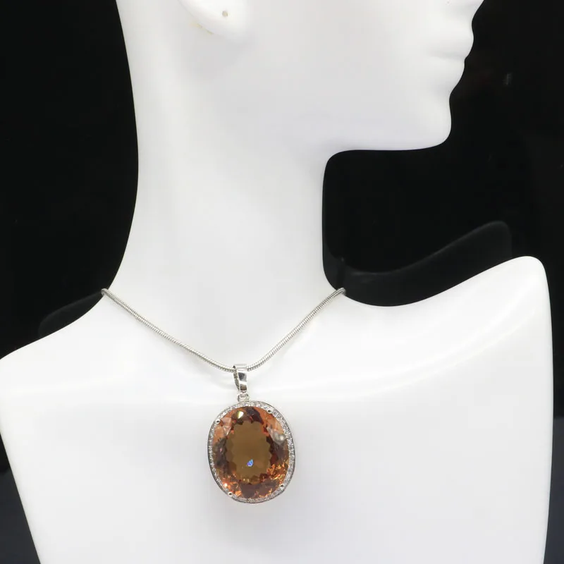 Набор ювелирных украшений, большой овальный топаз, 40x21 мм, 17,5 г, меняющий цвет, цирланиль, александрит, серебряные серьги, подвеска, привлекает внимание