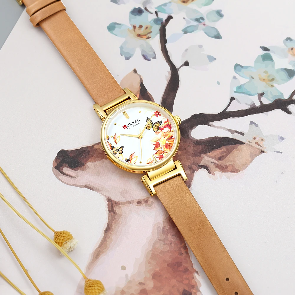 Часы CURREN женские наручные кварцевые, роскошные модные ультратонкие водонепроницаемые элегантные с сетчатым браслетом, с цветком и бабочкой
