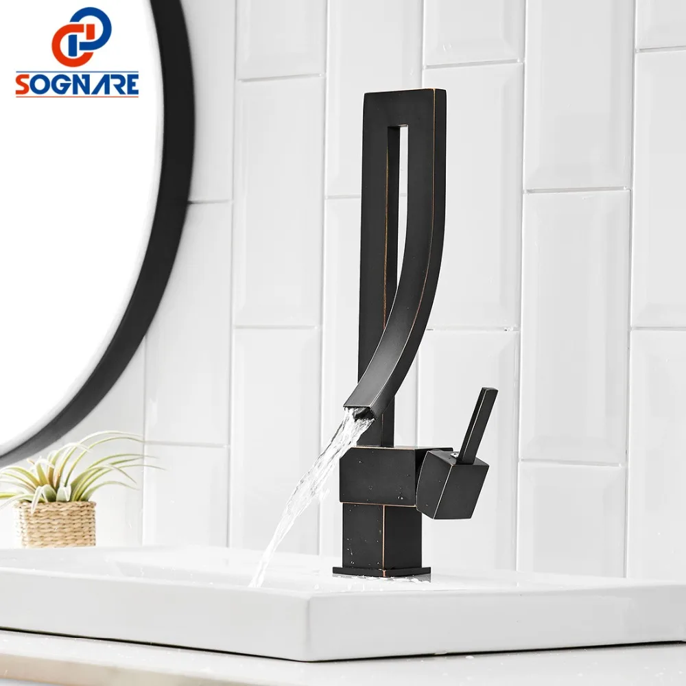 Черный квадратный смеситель класса люкс водопад высокий смеситель для раковины в ванной комнате вращающиеся на 360 краны и смесители для ванной и кухни смеситель