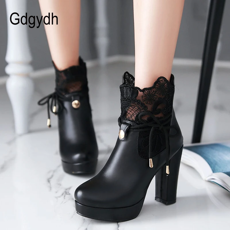 Gdgydh2022 ботильоны на шнуровке; Женские полусапожки на толстом высоком каблуке; Женская обувь на платформе с круглым носком; Белые свадебные туфли размера плюс