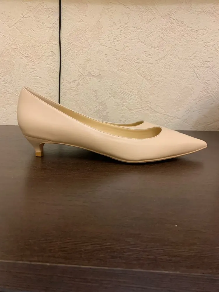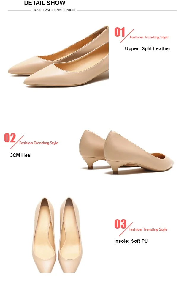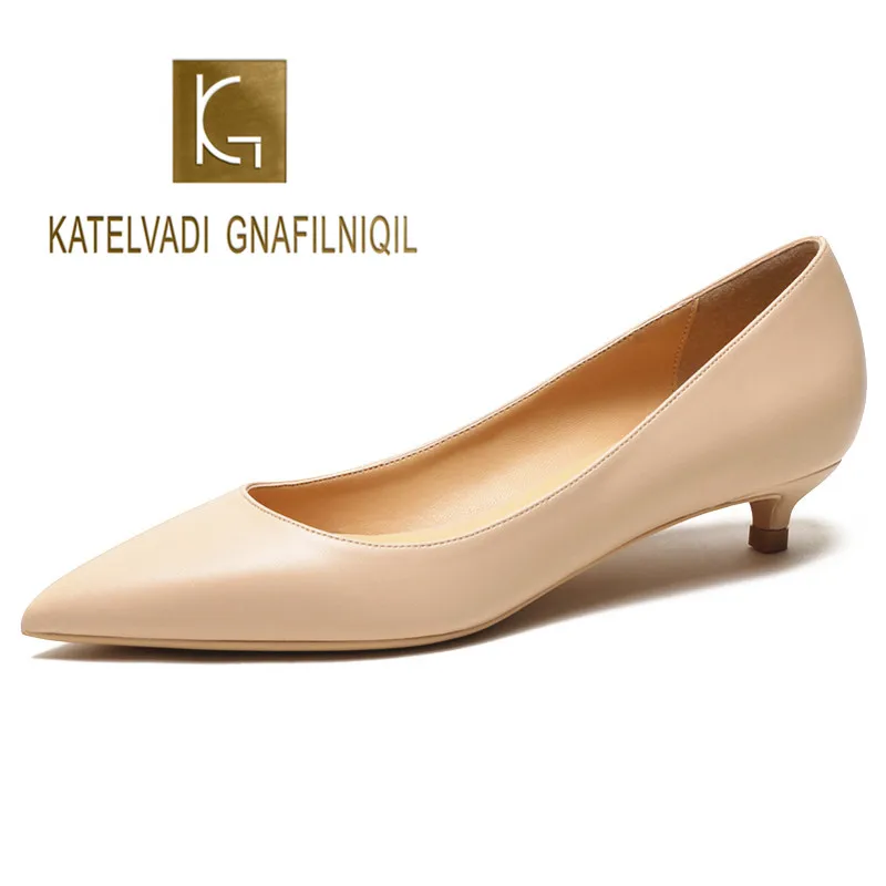 Туфли KATELVADI женские на низком каблуке 3 см, спилок, всесезонные офисные туфли с закрытым носком, бежевые, K-361