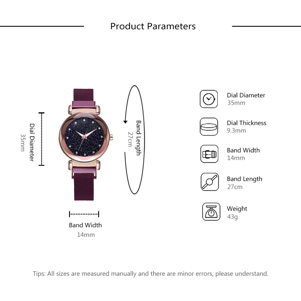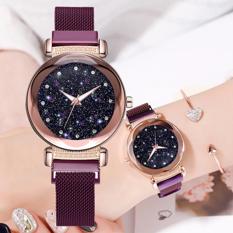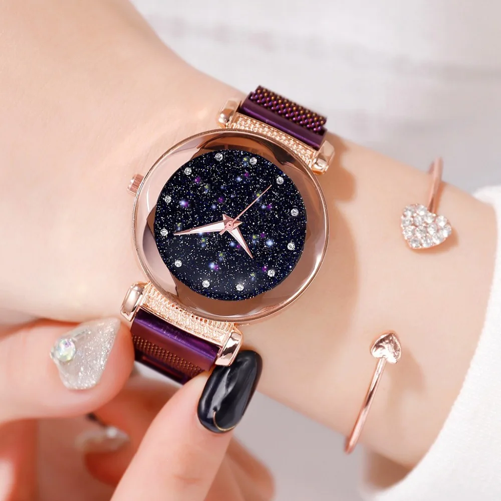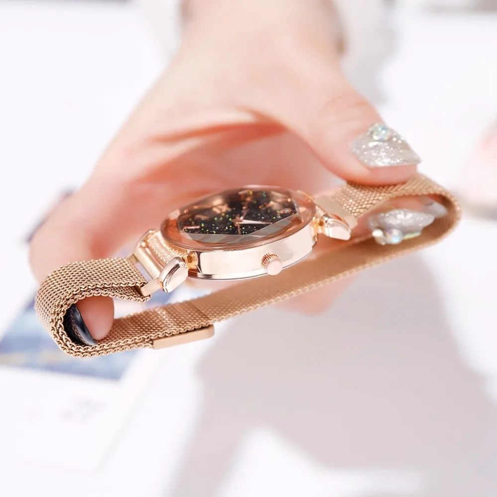 Часы Starry Sky женские, модные элегантные кварцевые часы с магнитной пряжкой и сетчатым ремешком