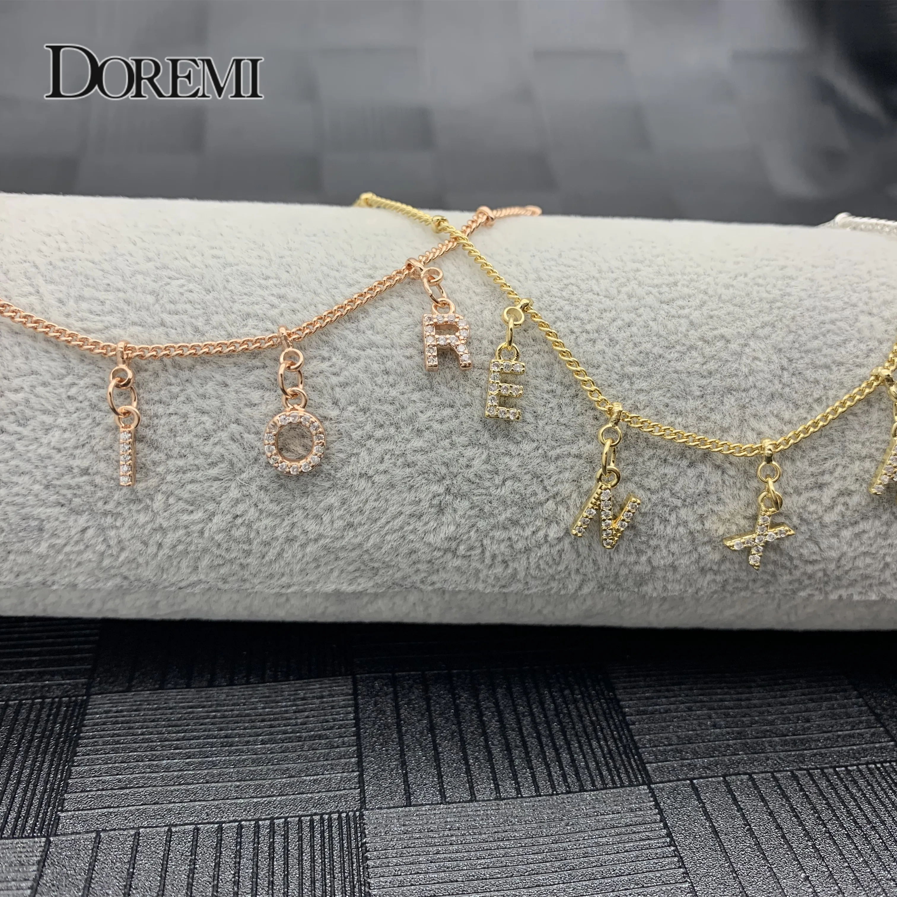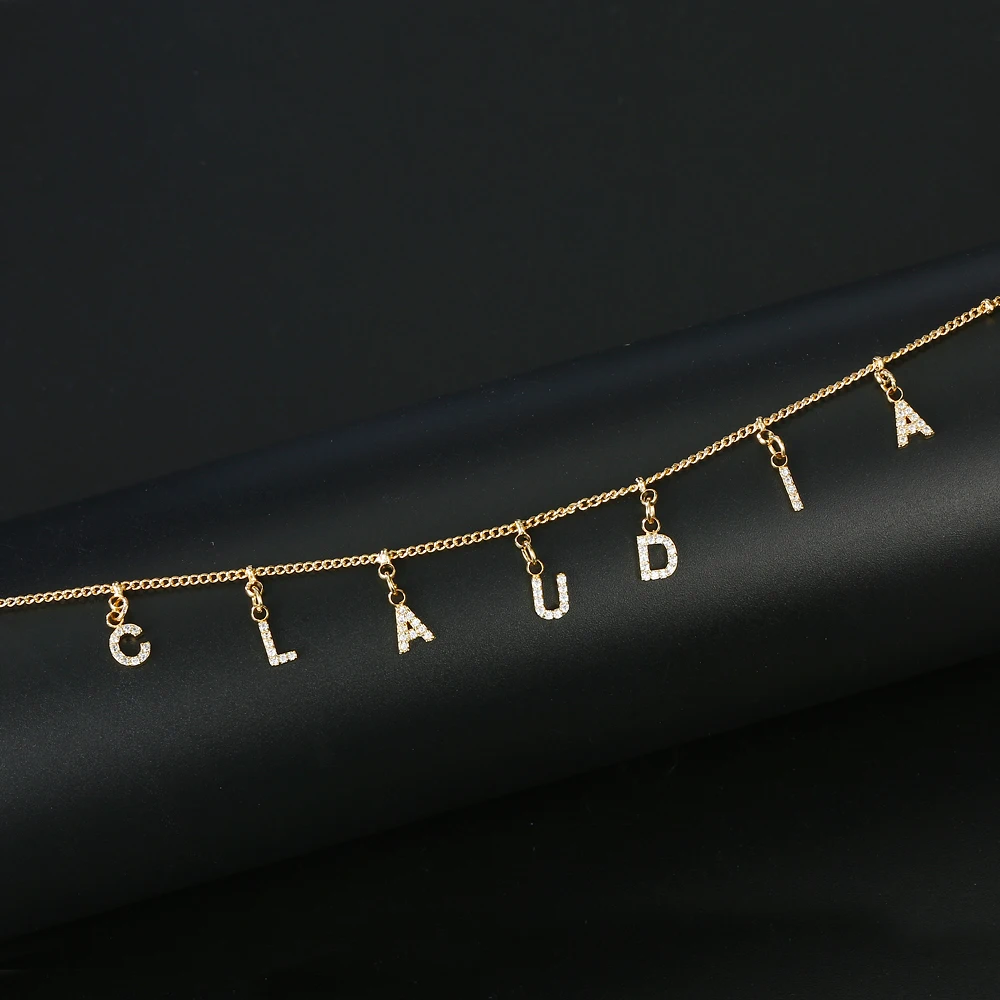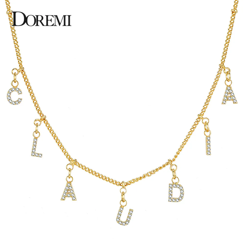 Золотое хрустальное ожерелье DOREMI с именем и буквами 6 мм, медные ожерелья на заказ для женщин, чокер с подвеской для девушек