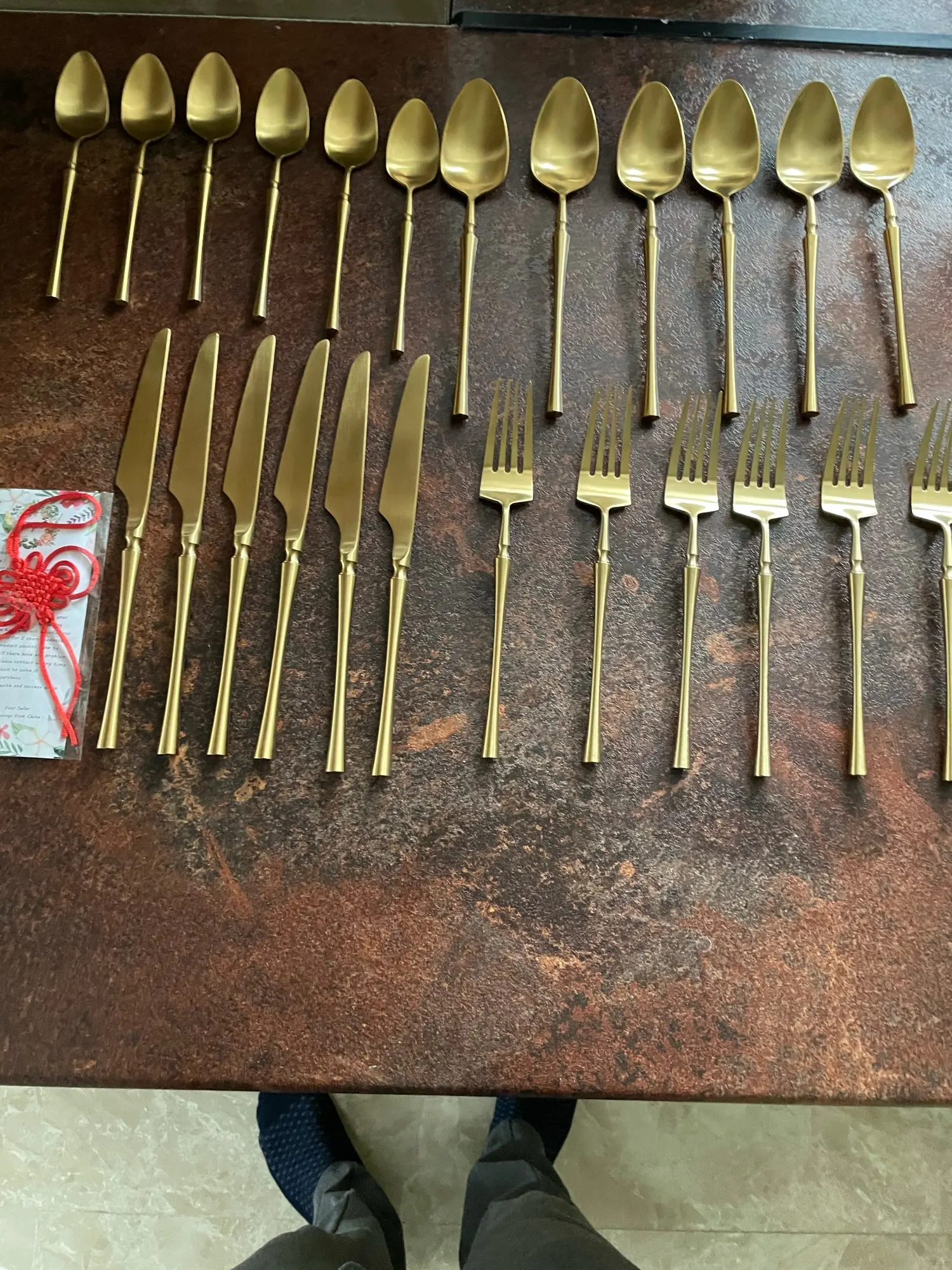 Набор из 24 предметов 1810 высокого качества из нержавеющей стали, матовый блестящий, золотой, черный, серебристый, белый, обеденный нож, ложка, вилка, кофейная ложка, набор для мытья в посудомоечной машине