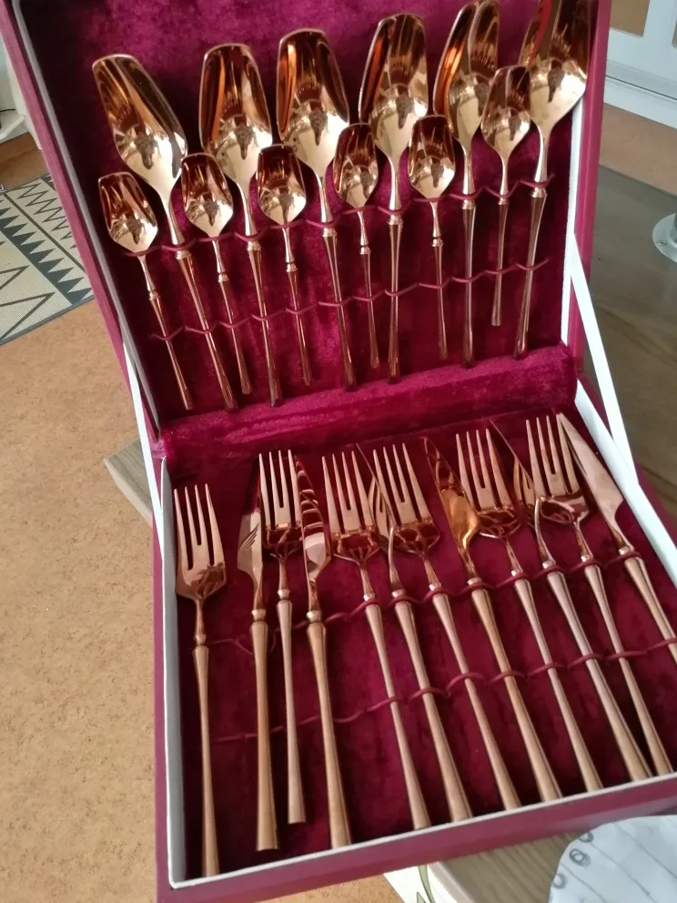 Несмотря на то, что доставка заказа превысила все сроки, я очень довольна товаром. Приборы очень элегантные, качественные, упакованы прекрасно. Выглядят дорого и стильно. Отдельное спасибо за подарочек. Желаю процветания магазину!