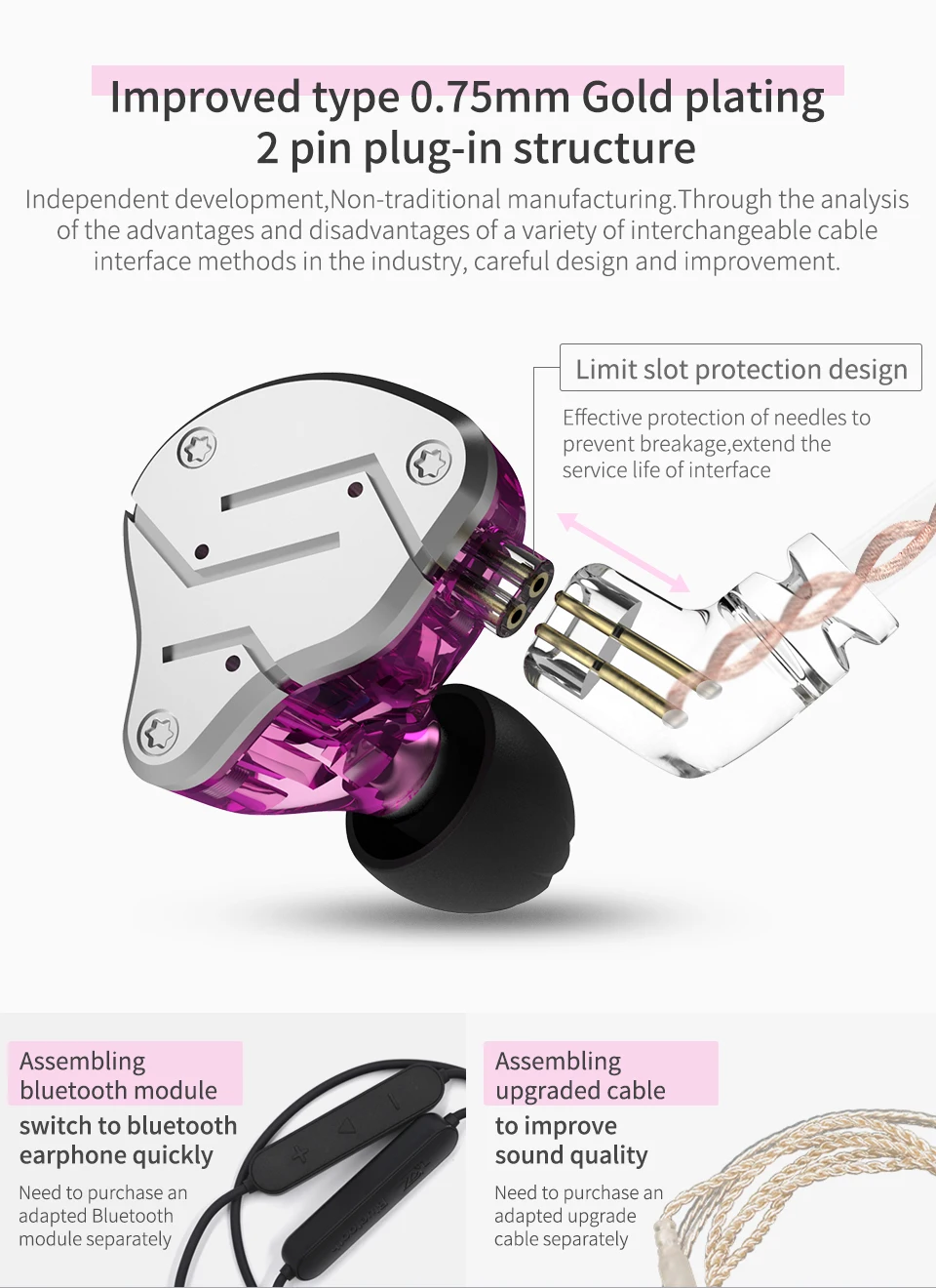 KZ ZSN 1BA 1DD тяжелый бас коммутационный кабель наушники HIFI четы...