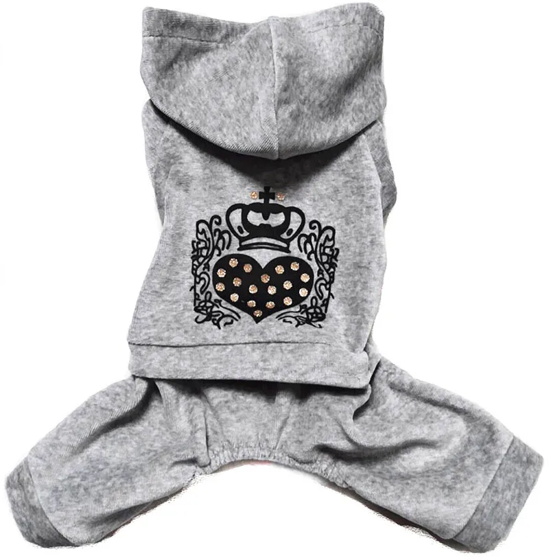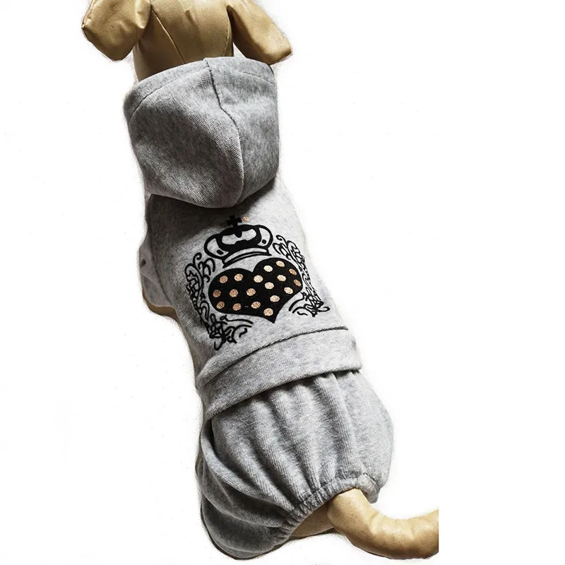 Спортивный бархатный комбинезон FODOG для собак и кошек, с капюшоном и короной, с узором в виде сердца, одежда для домашних животных, пальто для собак, товары для домашних животных, куртка
