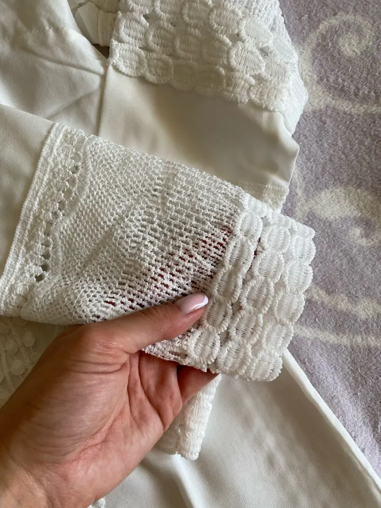 кофточка очень красивая, но маломерка на !!!!4 размера. открыла спор. вернули деньги на сл.день!!! брала 5xl на ОГ 108-110, в итоге 5xl на ОГ 92